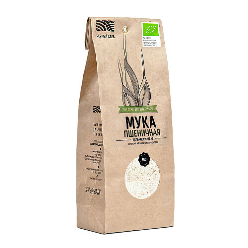 Мука Черный Хлеб изготовлена из зерна, выращенного по стандартам органического земледелия без применения химических удобрений, стимуляторов роста, пестицидов и гербицидов. Цельнозерновая мука получается путем помола цельного зерна, сохраняя при этом все полезные свойства: зародыш, отруби и эндосперм. Польза цельнозерновой муки очевидна, она подходит для приготовления блинов, оладьев, пасты, пиццы или печенья. Обладает красивым кремовым оттенком. Цельнозерновую муку можно смешивать с мукой тонкого и особо тонкого помола Черный Хлеб - таким способом тесто получится более плотным.