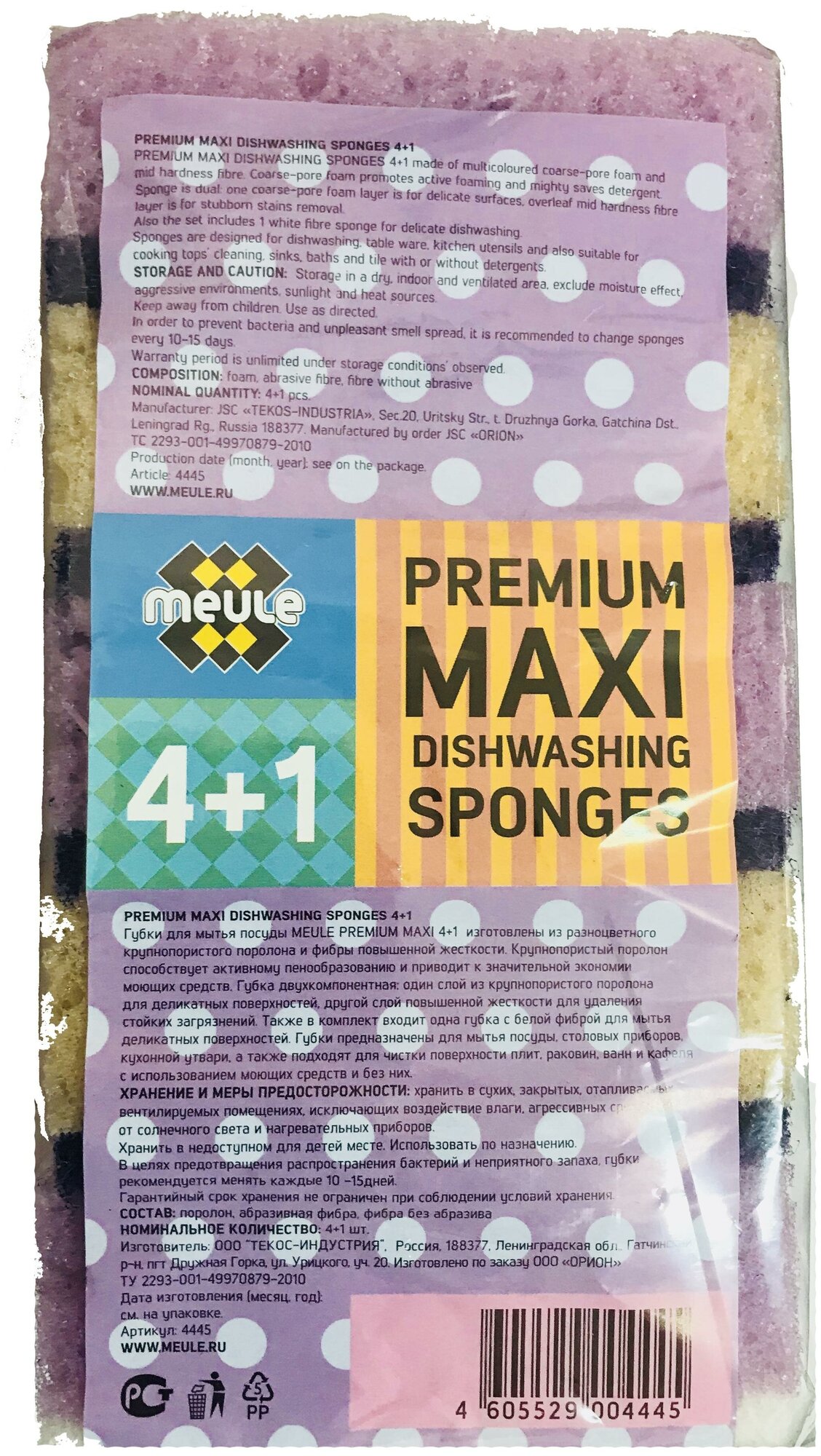 Модель: Губки Meule Premium Maxi Dishwashing sponges прямоугольные сиренево-бежевые 4+1 штука