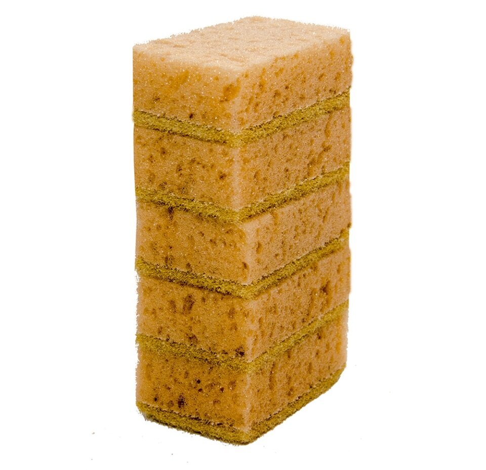 Губки для мытья посуды изготовлены из крупнопористого поролона и абразивной фибры. Крупнопористый поролон способствует активному пенообразованию . и приводит к значительной экономии моющих средств. Губка двухкомпонентная, один слой из крупнопористого поролона, другой из абразивной фибры.