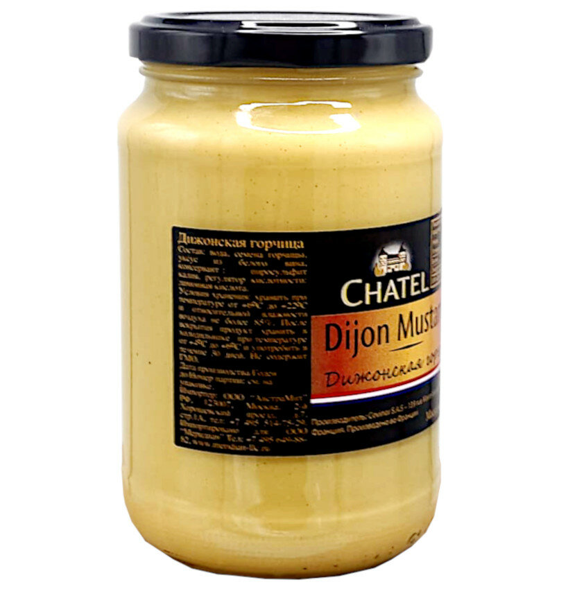 Дижонская горчица Chatel - оригинальный продукт из Франции. Обладает нежной сливочной консистенцией и пикантным вкусом с умеренной остротой. Без сахара в составе. Используется для приготовления мясных блюд, сэндвичей, в качестве маринада и заправки для салатов. А еще ее можно просто подать к пельменям или холодцу. Дижонская горчица хорошо сочетается с мясом и овощами. Она также составит интересный тандем с цитрусовыми, авокадо, грибами и другими продуктами.
