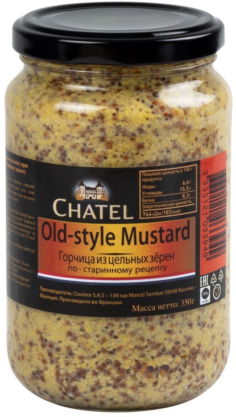 Горчица из цельных зерен Chatel произведена во Франции по старинному рецепту. Она обладает сливочной консистенцией и легкой остротой. Такая "мягкость" делает горчицу универсальной приправой. Ее можно использовать для приготовления бутербродов, в качестве маринада, заправки для салатов и просто подавать к горячим блюдам. Горчица отлично подчеркнет вкус мяса, ржаного хлеба, овощей и морепродуктов.