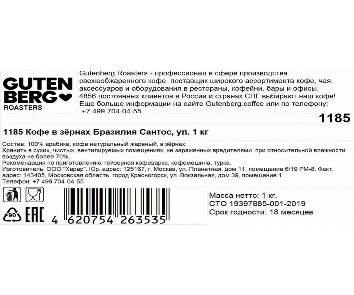 Сервис сравнения цен СкидкаГИД предлагает сравнить цены на товар «Кофе в зёрнах Gutenberg Бразилия сантос 250г»