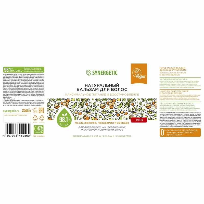 Бальзам для окрашенных волос Synergetic Максимальное питание и восстановление 250мл 4607971452560