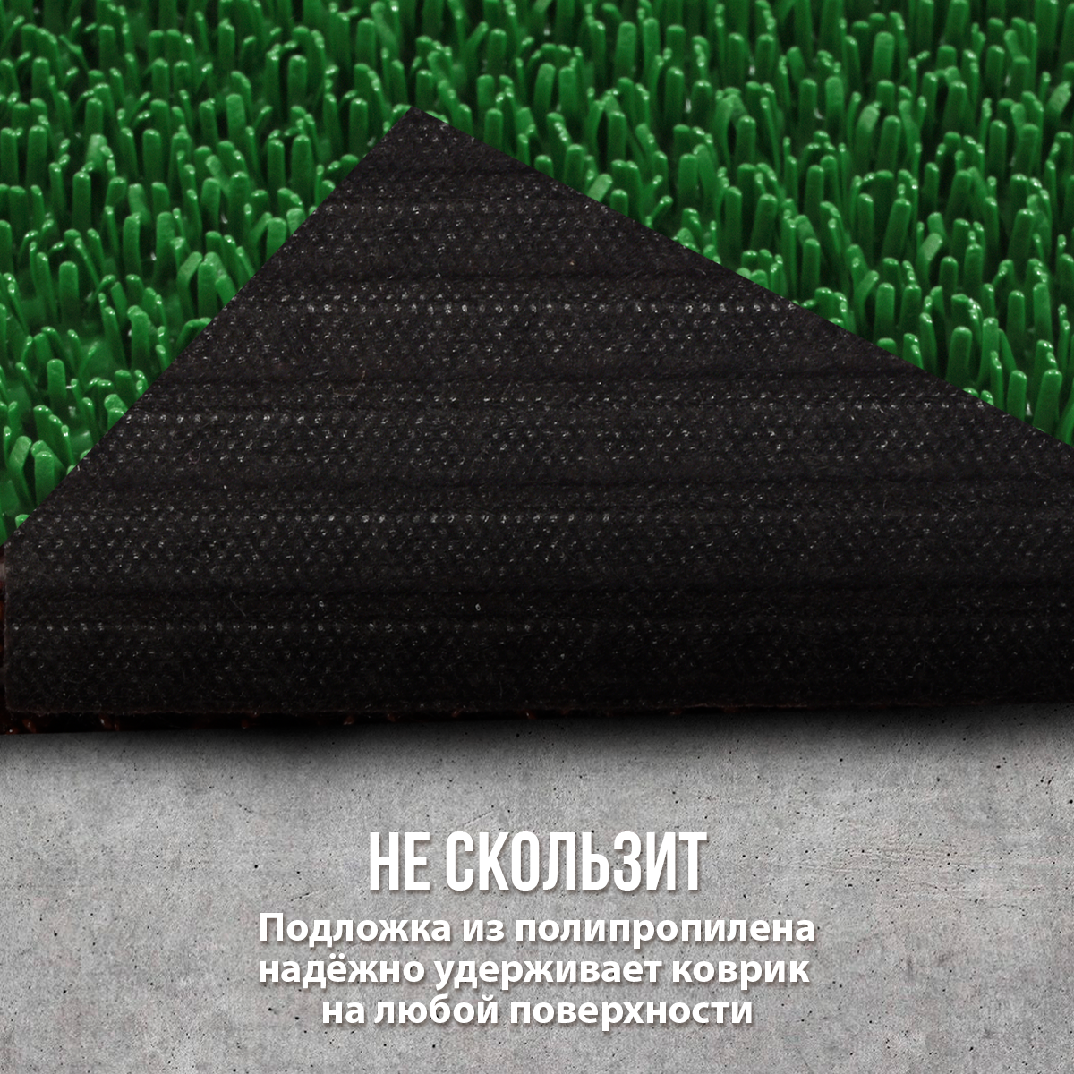 Щетина изготовлена из полиэтилена. Коврик не боится воздействия солнца, реагентов, мороза и жары.