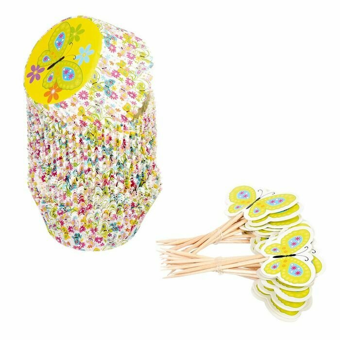 Набор для выпечки и украшения кексов Marmiton Весенний Формочки 24шт Шпажки 24шт в ассортименте