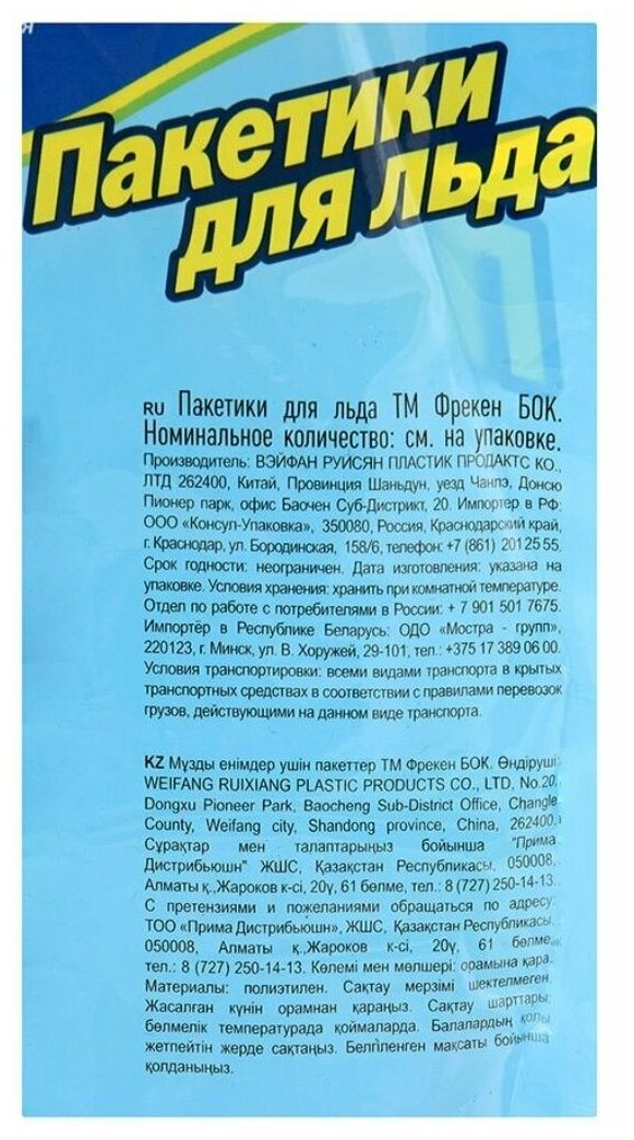 | Тип товара | пакеты для льда |