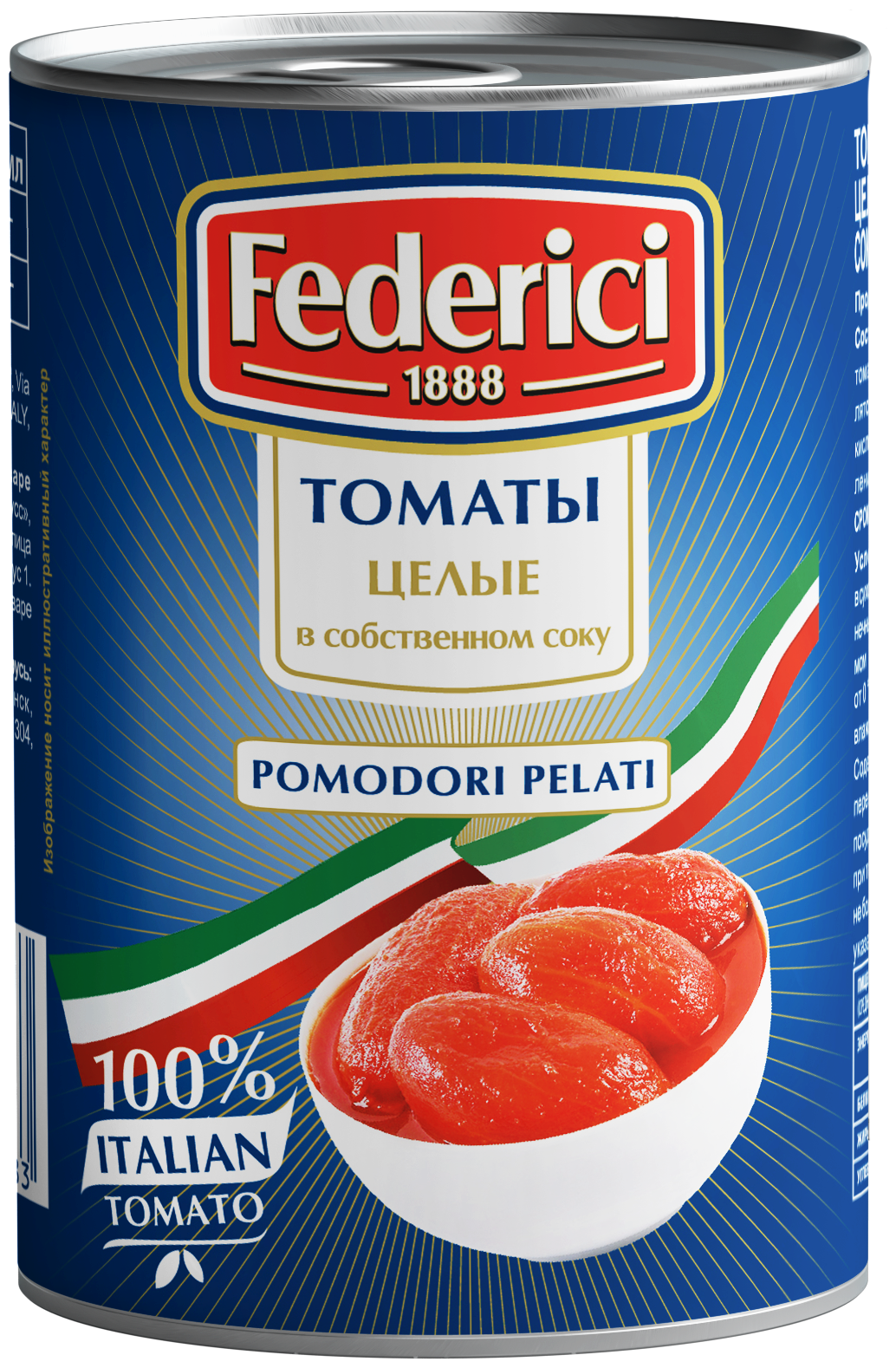 Очищенные целые томаты (помидоры) в собственном соку Whole peeled tomatoes бренда Federici — это отличное самостоятельное блюдо для повседневного стола, которое подойдет к картофелю, кашам и плову. Также помидоры добавляют при приготовлении супов, овощных рагу, соусов и холодных закусок, а также на их основе готовят томатные супы, и подливы. Невозможно представить итальянскую кухню без блюд с очищенными томатами. Южноитальянские хозяйки готовят из них специальный соус-пассату, который входит в число ежедневных добавок к основным блюдам. Для консервирования собирают только достигшие оптимальной зрелости плоды и тщательно очищают от кожицы. Отсутствие кожицы придает им однородность и дополнительную сладость во вкусе. Полностью готовые к употреблению консервированные томаты обладают нежным сладковатым вкусом и натуральным ароматом. Подходит веганам (Vegan) и вегетарианцам, а также в пост.