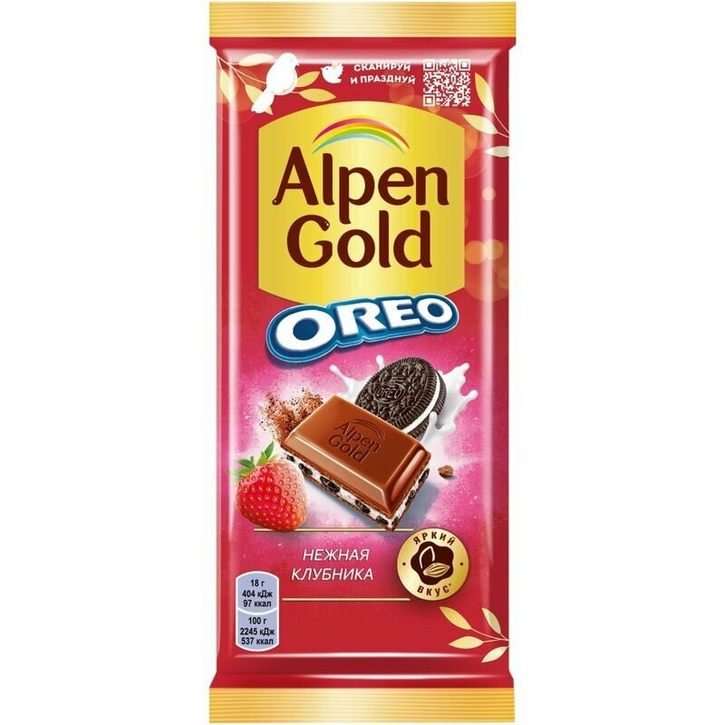 - Альпен Голд Орео белый шоколад и нежная клубника
