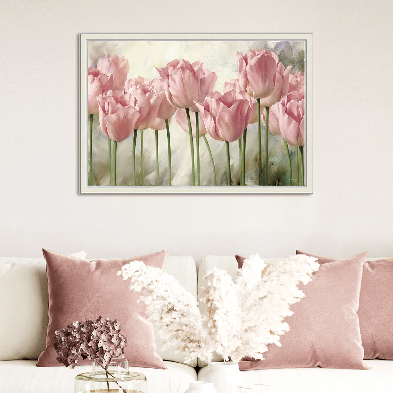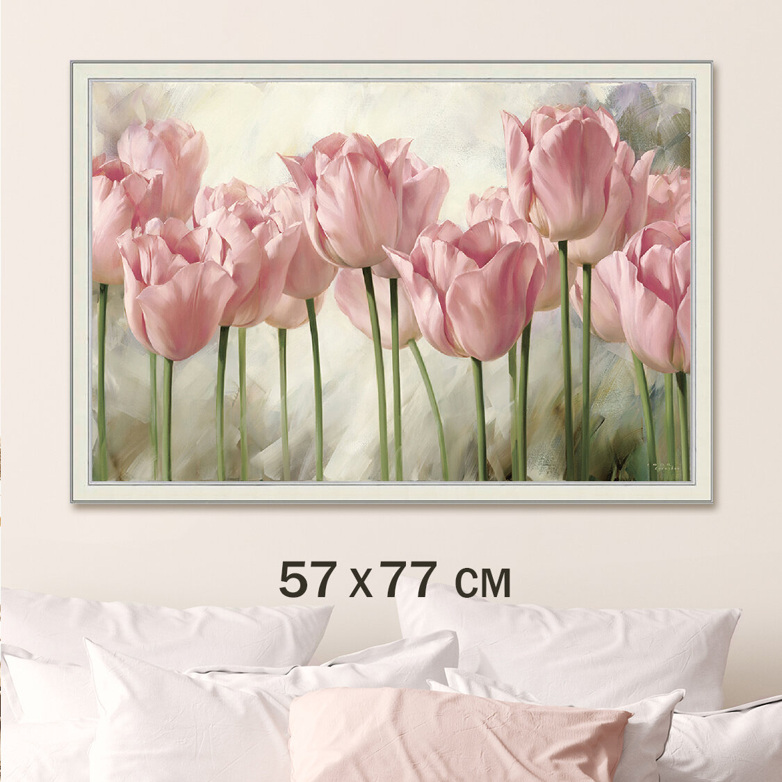 Картина для интерьера "Розовые тюльпаны 2" 57х77 см/Большая интерьерная картина на стену в гостиную в спальню/цветы/Графис Hoff (размер: от 61 до 90 см)