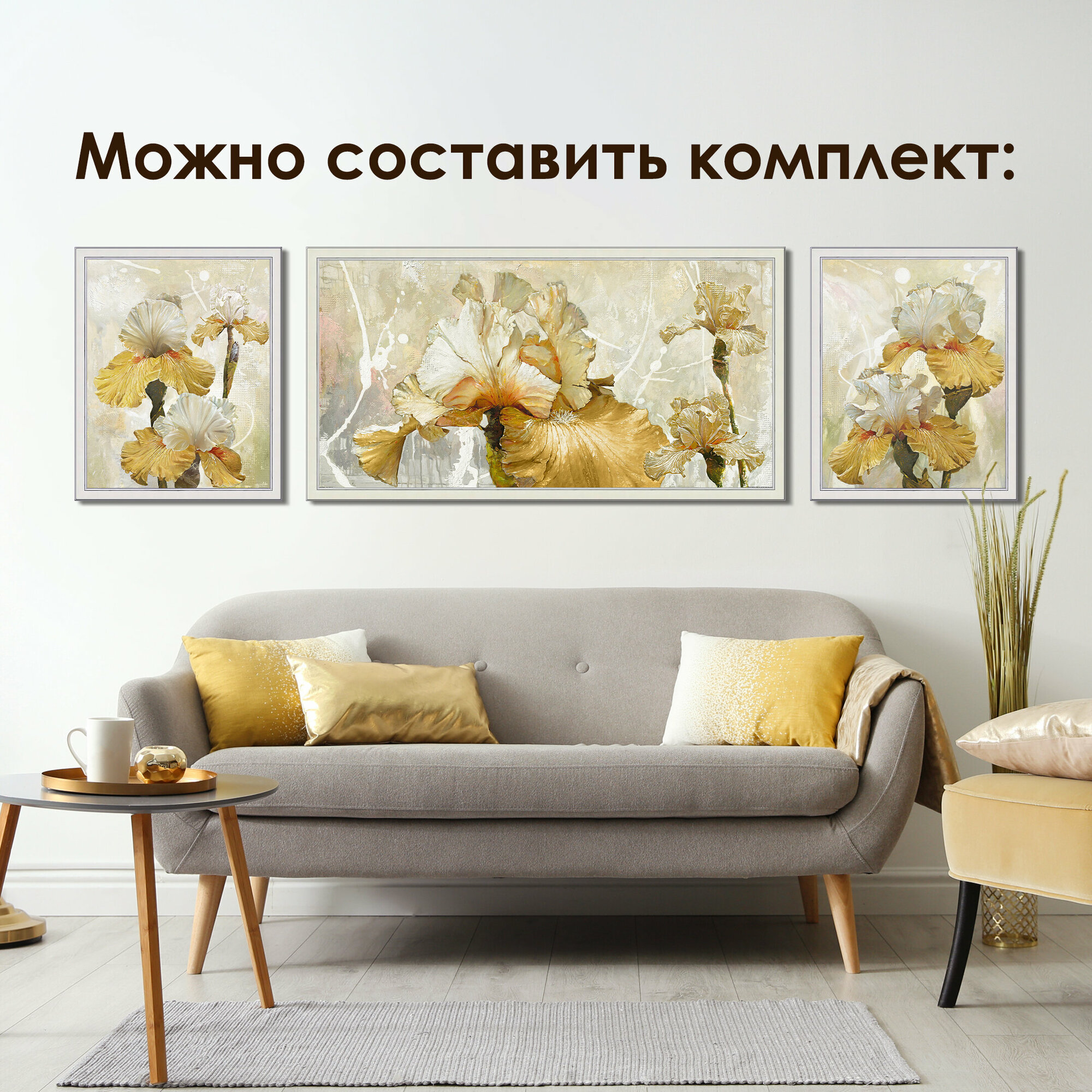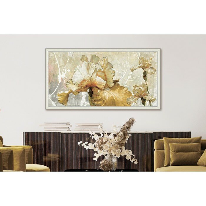 Сервис сравнения цен СкидкаГИД предлагает сравнить цены на товар «Картина на стену для интерьера в гостиную в спальню "Романтические ирисы 3" 57х107 см на бумажном холсте в рамке большая цветы/Графис Hoff»