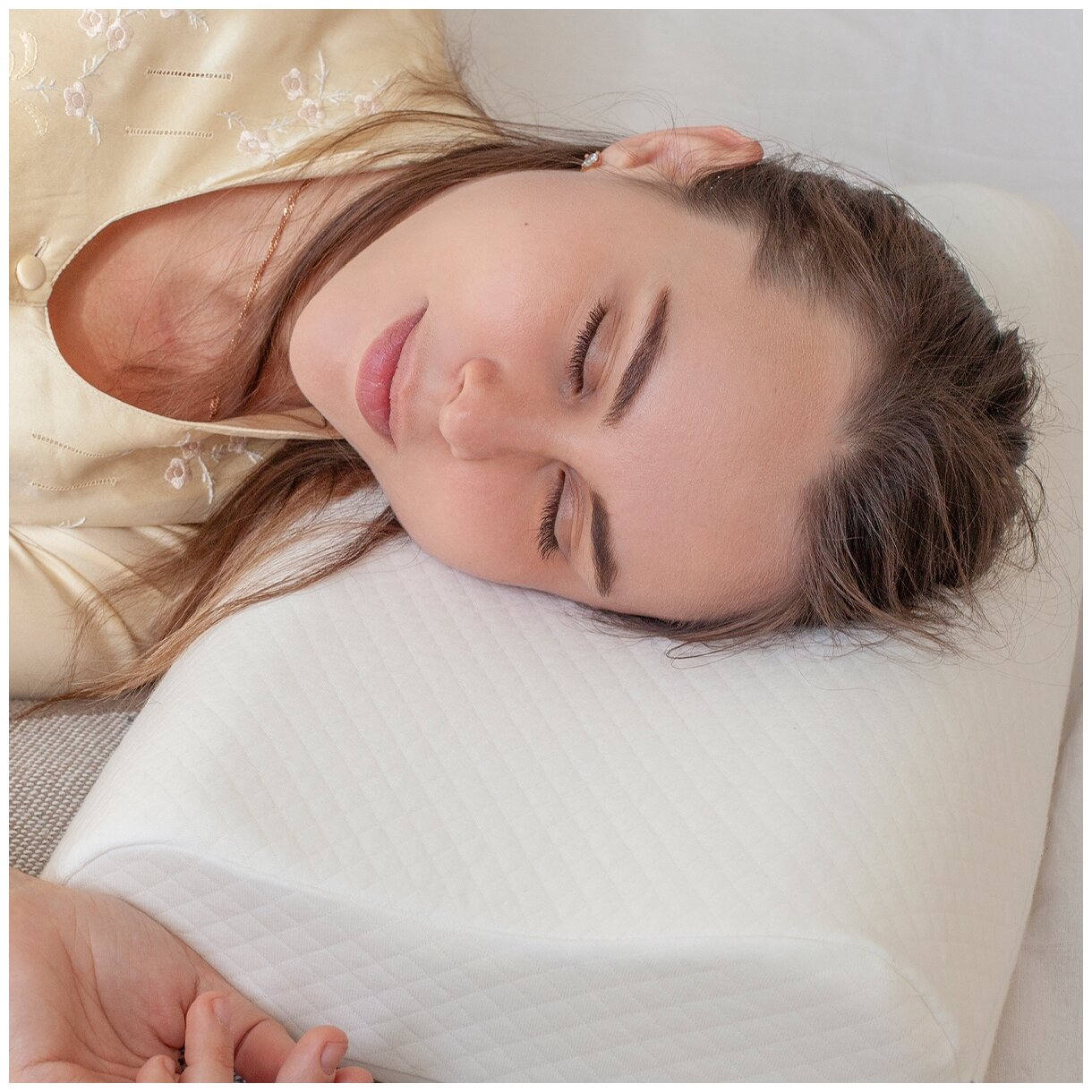 Анатомическая подушка Lolidream изготовлена из специального материала c эффектом памяти – memory foam. Это воздушная пена, которая делает подушку мягкой и эластичной и обеспечивает превосходный теплообмен. Нагреваясь от тепла тела, пена расширяется и прогибается, в точности повторяя форму головы. При этом части подушки, не соприкасающиеся с головой и шеей, остаются упругими, а после случайного сдавливания она принимает изначальную форму за считанные секунды. Подушка имеет форму волны и обеспечивает правильное положение головы, мышц шеи и плечевого пояса во время сна. Валики на краях подушки, поддерживая позвоночник, снимают с него напряжение и способствуют полноценному кровообращению во время сна. Благодаря вогнутой форме подушка не сдавливает лицевые мышцы и предотвращает эффект "помятого лица" после сна.