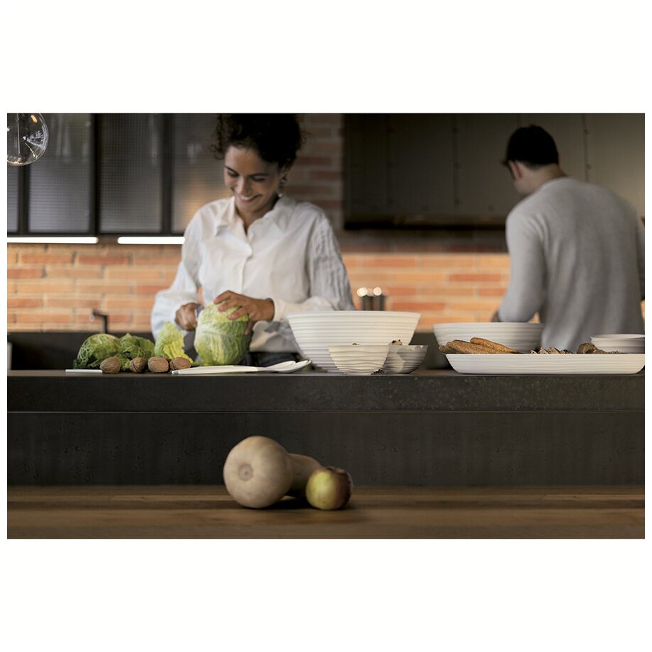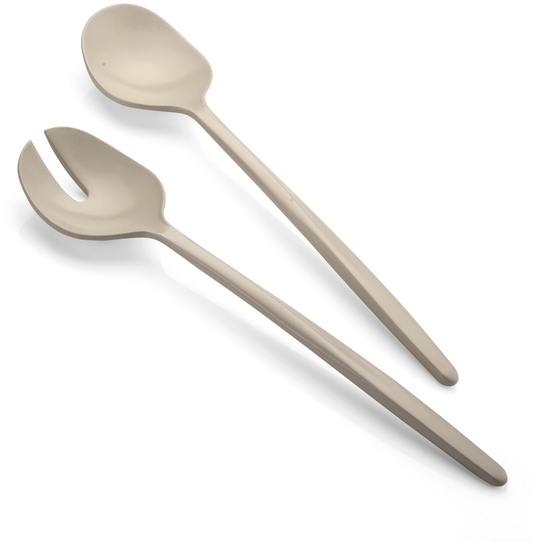 Приборы для салата отлично гармонируют с другими предметами коллекции. В сочетании с миской или блюдом они образуют идеальную композицию для сервировки, которая будет одинаково хорошо смотреться как в повседневной, так торжественной обстановке. Можно мыть в посудомоечной машине при температуре не более 55 градусов. Приборы не подходят для микроволновой печи.Коллекция посуды поможет создать красоту при сервировке стола и сохранить окружающую среду. Изделия разработаны Pio&Tito Toso по запатентованной технологии из перерабатываемого продукта. В качестве исходного сырья выступают пластиковые бутылки объемом 1,5 л. Дизайн изделий напоминает керамику, а реалистичности внешнему виду придает тщательно подобранные пастельные цвета.