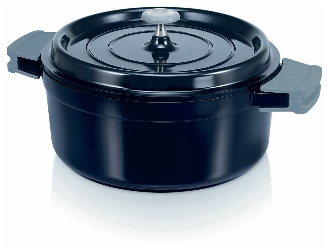Корпус из литого алюминия означает высокую теплопроводность и экономию энергии.- Специальное индукционное дно помогает обеспечивать быстрое приготовление и длительное сохранение тепла.- Толщина корпуса — 2,5 мм, толщина дна — 2,5 мм.- Корпус прямой формы.- 2-слойное керамическое покрытие Bekadur Ceramica не содержит перфтороктановую кислоту (пфок).- Удобно пользоваться, в связи с лёгким весом изделия.- Приготовление на низких и средних температурах способствует сохранению полезных свойств продуктов.- Рельефная поверхность крышки способствует циркуляции жидкости и сохранению сочности блюд.- Удобно и безопасно, так как боковые ручки имеют съёмные накладки из жаропрочного силикона. Плюс к тому, есть съёмная силиконовая накладка на ручке крышки.Совместимость: все типы варочных поверхностей, включая индукционные, а также духовка (до 180°С). Рекомендовано мыть вручную.