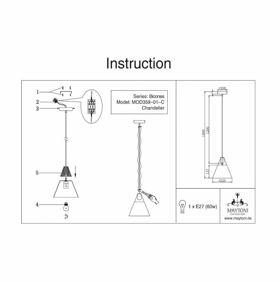 Подвесной светильник Bicones P359-PL-220-C - продукт известной компании Maytoni (Германия). Имеет максимальную мощность 60 Вт, освещает площадь до 3 кв. м. Отлично подойдет для таких мест, как гостиная, кафе, кабинет, кухня, над обеденным столом, над кухонным островом. Впишется в интерьеры следующих стилей: модерн.