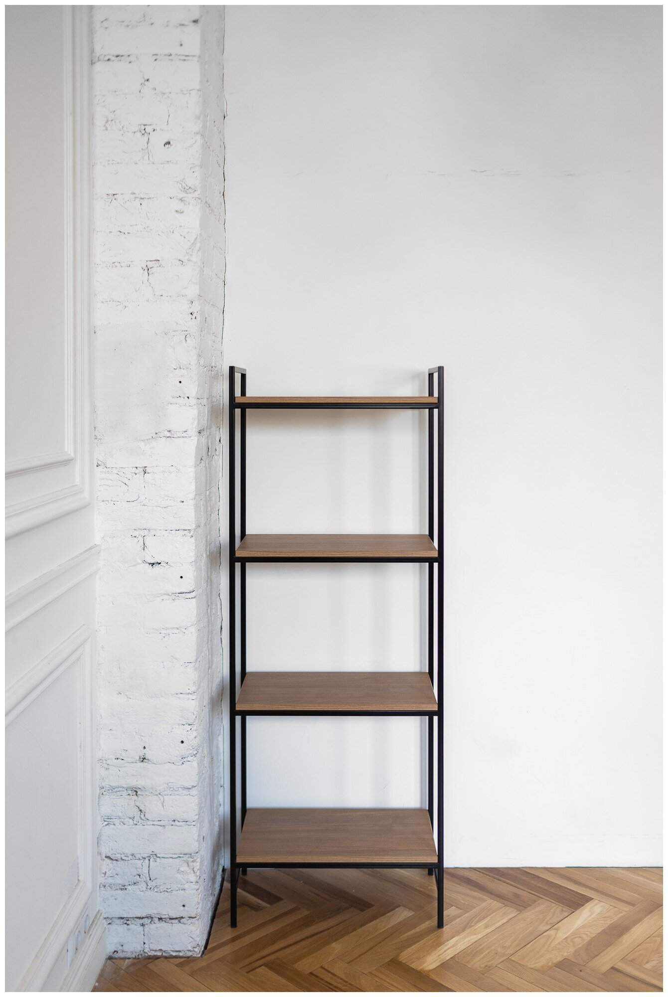Стеллаж с полками под дерево подойдет для зонирования пространства квартиры, загородного дома, офиса, студии и салона.