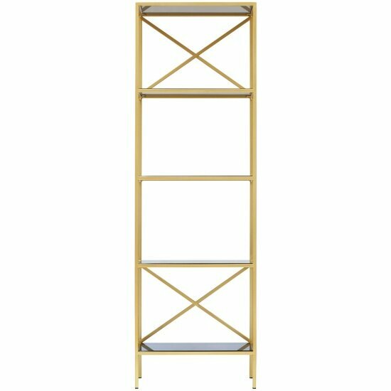 Золотой стеллаж с полками из закаленного тонированного стекла привлекает внимание элегантным дизайном и функциональностью. Утонченное сочетание золотого каркаса и стеклянных полок позволит разместить стеллаж в современном интерьере.