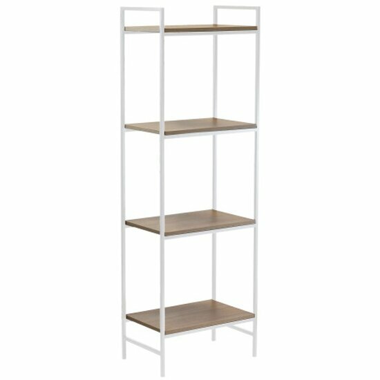 Белый стеллаж с полками из ЛДСП привлекает внимание элегантным дизайном и функциональностью. Утонченное сочетание белого каркаса и деревянных полок позволит разместить стеллаж в современном интерьере.
