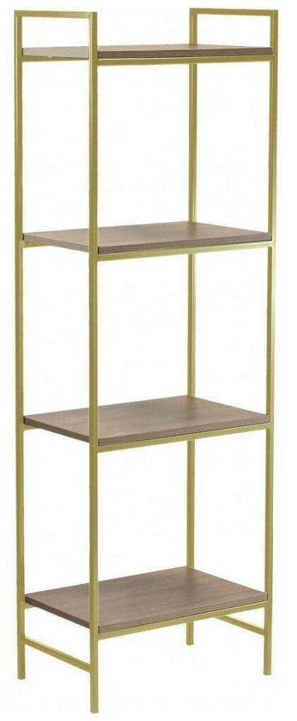 Золотой стеллаж с полками из ЛДСП привлекает внимание элегантным дизайном и функциональностью. Утонченное сочетание золотого каркаса и деревянных полок позволит разместить стеллаж в современном интерьере.