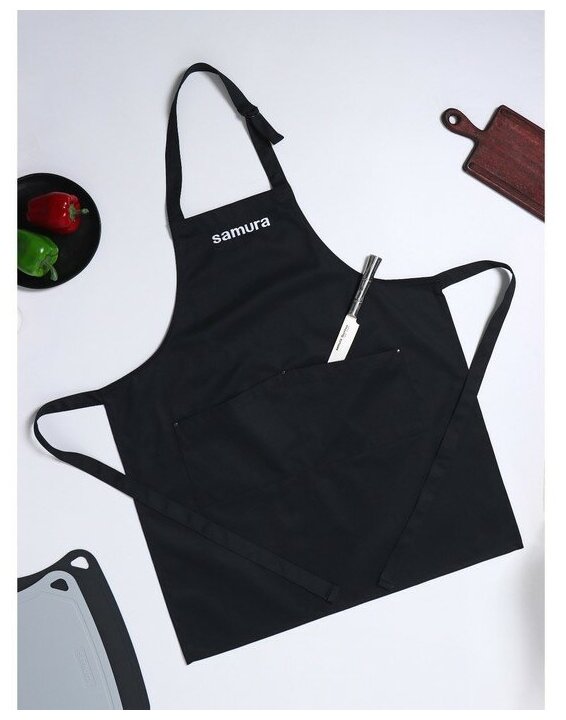 В комплекте 1 шт.Фартук Samura – это стильный и практичный аксессуар для кухни, который защитит ваше платье или рубашку от пятен и брызг.Он выполнен из высококачественного материала, который легко моется и сохраняет свой цвет даже после многократных стирок. Фартук имеет удобные завязки на шее и поясе, которые позволяют регулировать его посадку на теле. Благодаря своему черному цвету, фартук выглядит элегантно и стильно, идеально подходящим для любой кухни. Этот аксессуар будет незаменимым помощником при готовке пищи и станет прекрасным подарком для любителей кулинарии.