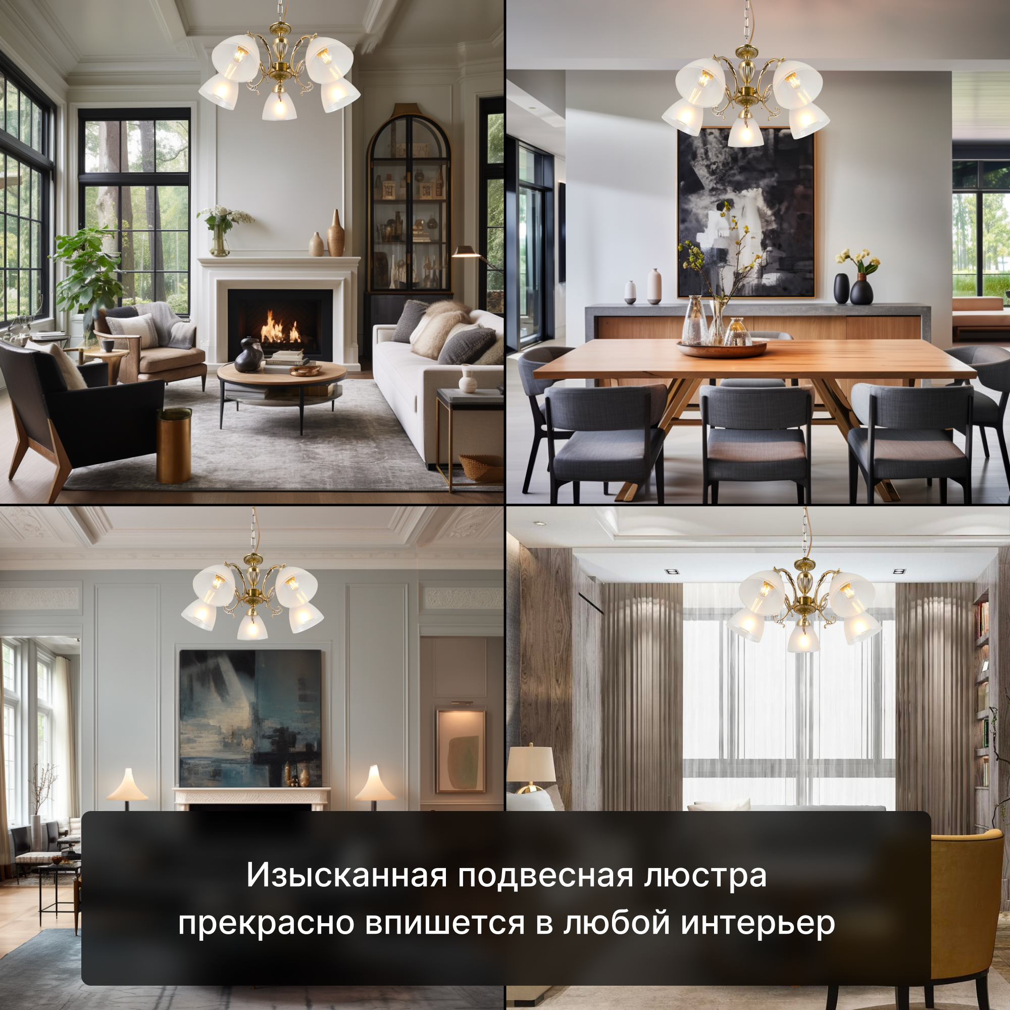 Заказала итальянскую люстру, которая была на 6 тысяч дороже, но от нее отказалась. Все выглядело грубо, ободки не подходили к плафонам, а сами плафоны напоминали тазики. Думала, если за 16 тысяч такое, то за 9600 будет вообще беда. Но нет! Все аккуратно, плафоны не маленькие, но и не слишком громоздкие, прозрачная окантовка на плафоне...