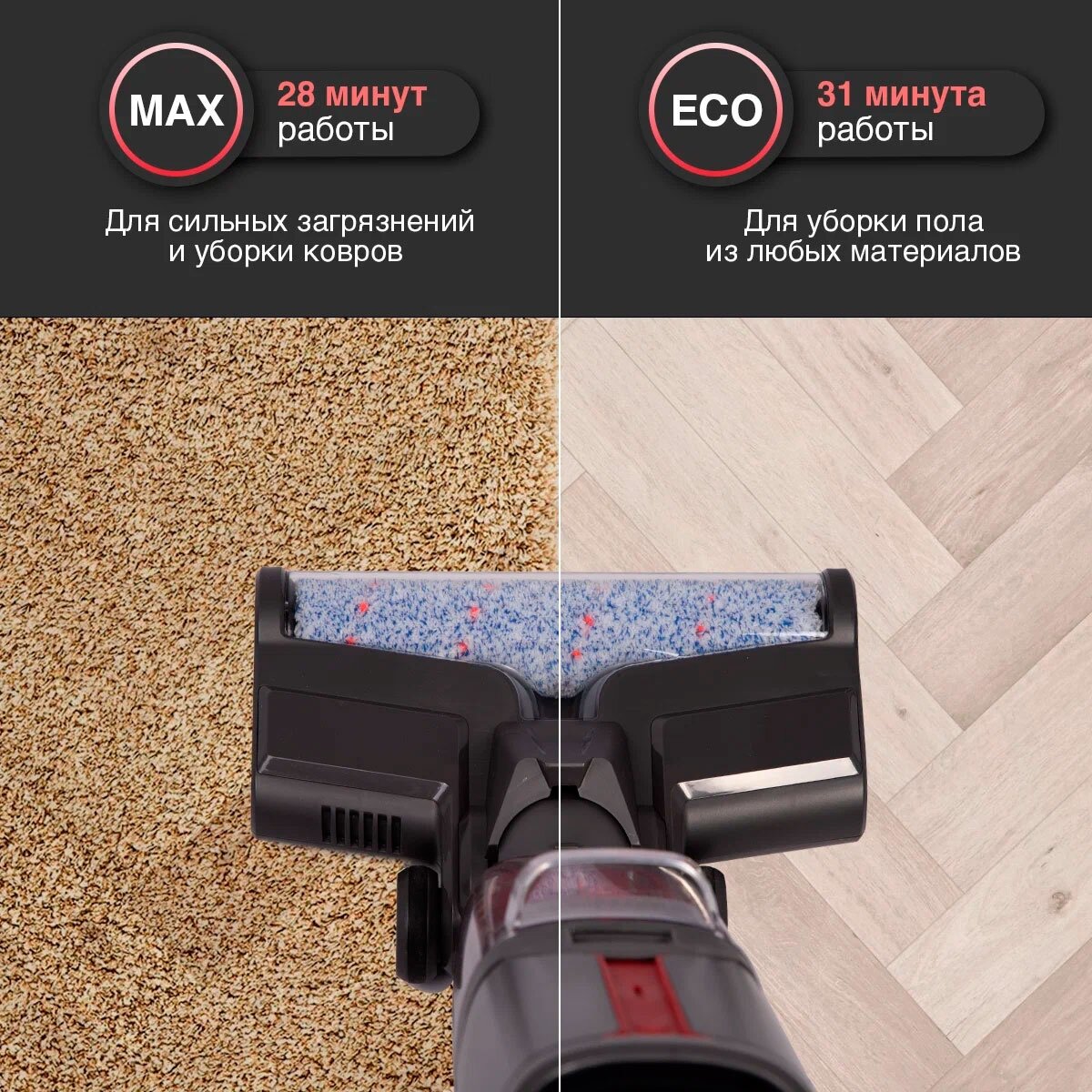 Эффективный даже на коврах, мощный аккумулятор, простота в уходе и использовании