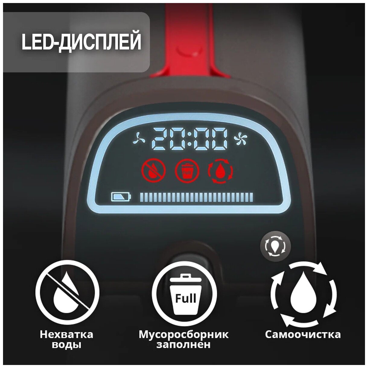Пылесос Atvel позволяет не только убирать и пылесосить без проводов, но и произвести влажную уборку помещения, убирать любые разлитые жидкости, ворс животных или мокрую грязь насухо и без следа. Благодаря большой моторной щётке и влажной уборке пылесос распыляет воду, выбивает и собирает загрязнение на скорости 2500 об/мин. Ёмкость батареи: 2600 мАч Напряжение батареи: 25,2 В Время работы: 28-30 мин Время зарядки: 4-4,5 часа Рабочие режимы: Eco Режим / Max Режим