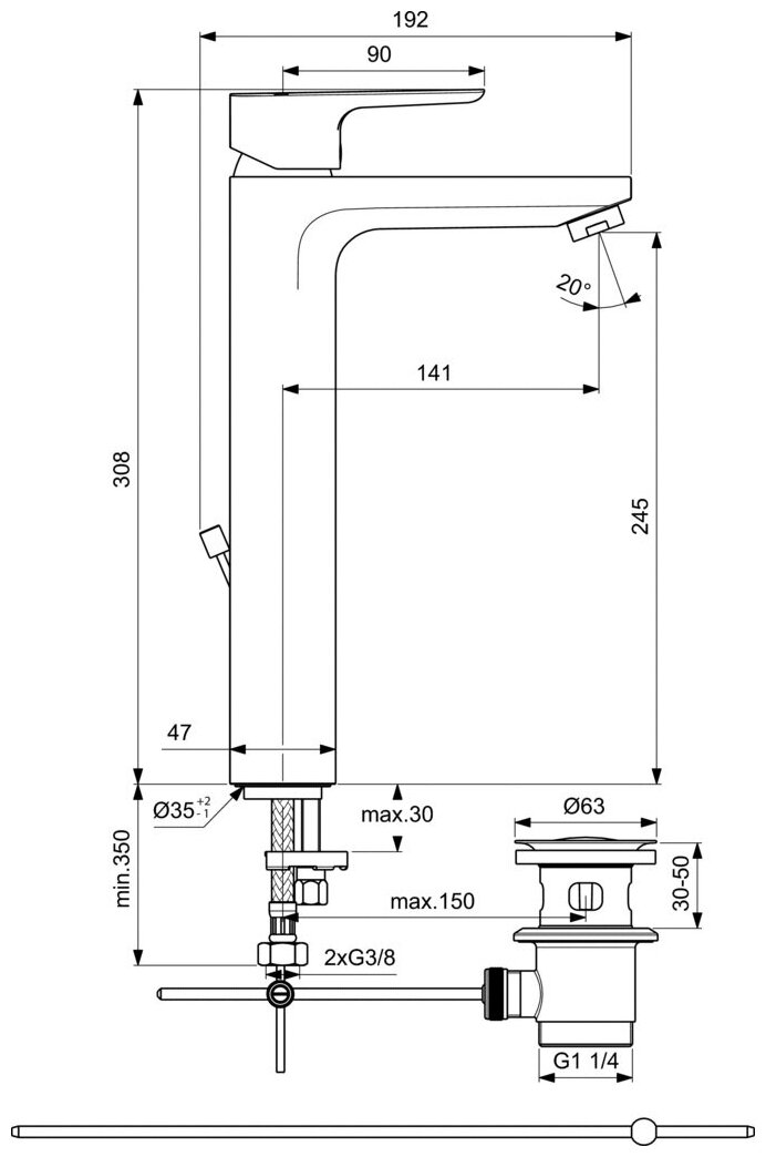 Смеситель для раковины Ideal Standard Ceraplan III Slim BC561AA с донным клапаном.
