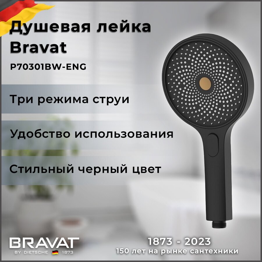 Сервис сравнения цен СкидкаГИД предлагает сравнить цены на товар «Душевая лейка Bravat P70301BW-ENG Черная матовая»