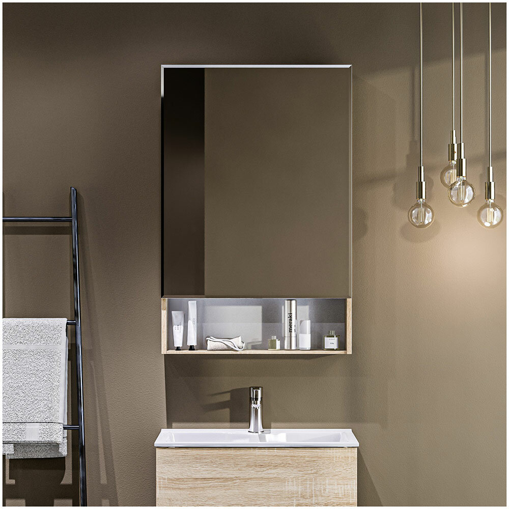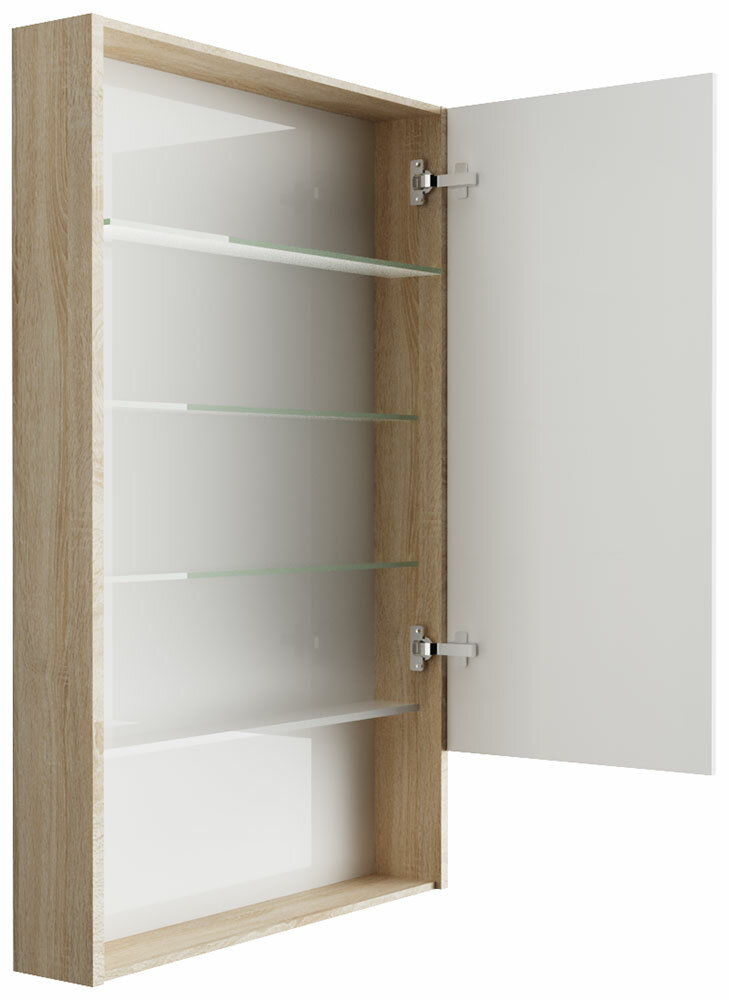 - Система хранения: 1 распашная дверца с механизмом плавного закрывания, 2 полки внутри шкафа и 1 открытая полка снизу.
