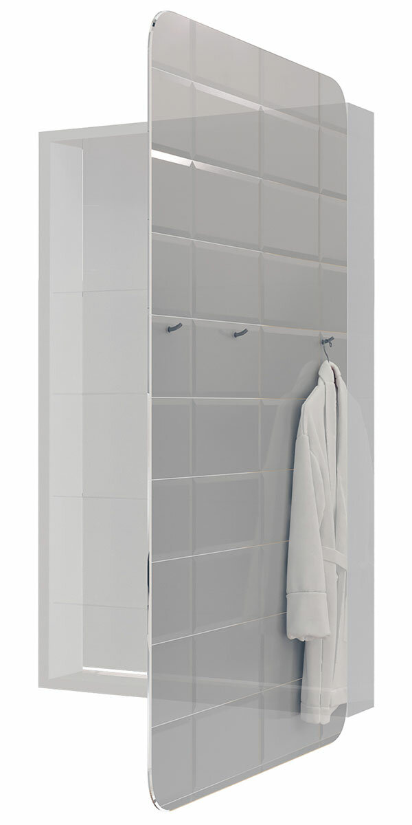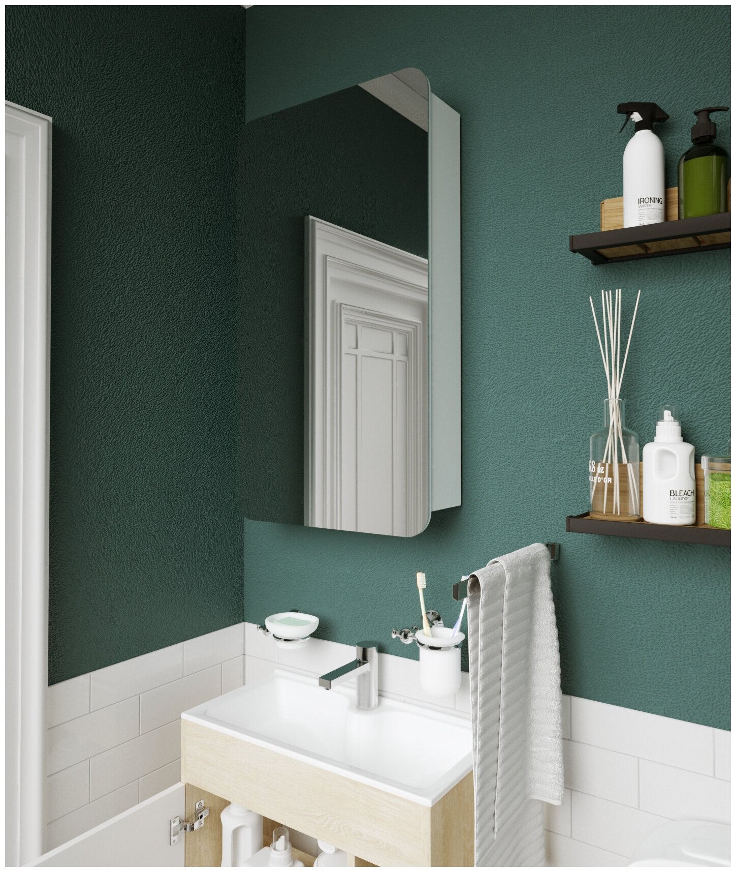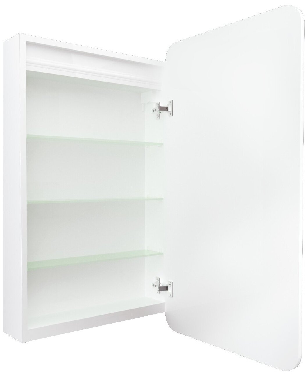 Зеркало-шкаф Nuvo 50. Цвет мебели: Белый. Крепления к стене идут в комплекте. Функциональный зеркальный шкаф. Используется зеркальное полотно производства Бельгии и Франции. Основа полотна из серебряной амальгамы, что значительно увеличивает срок эксплуатации зеркал.