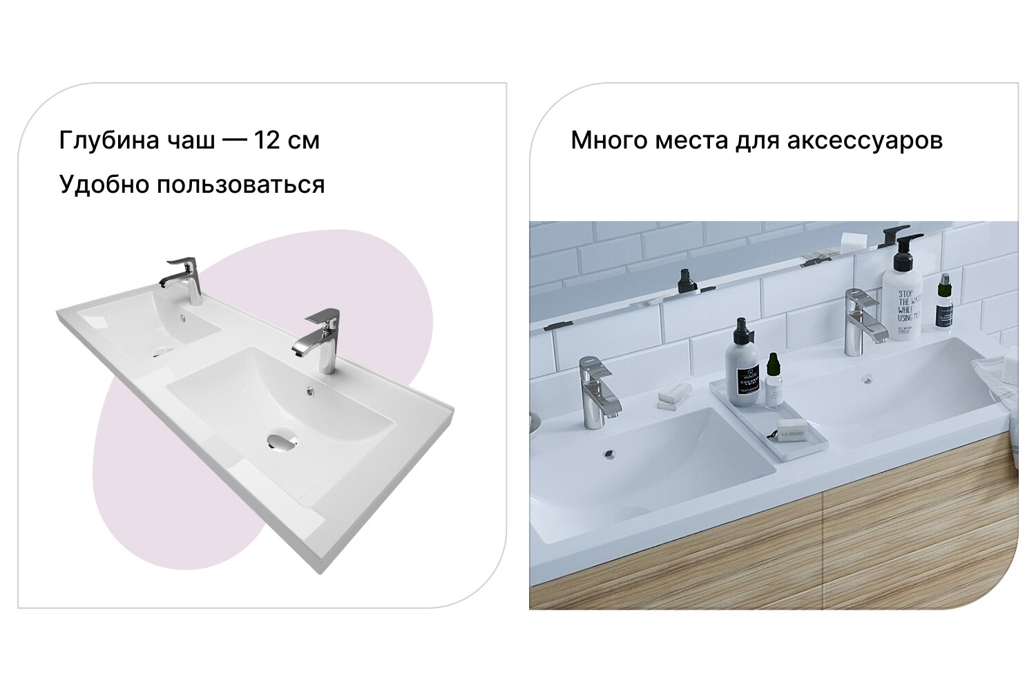 Раковина Duo предназначена для размещения над 2-мя тумбами, отличается своим строгим силуэтом с четкой геометрией бортов и глубокими чашами. Выполнена в минималистичном дизайне и обладает функциональными широкими зонами для хранения по центру и по бокам. Раковина изготовлена из ударопрочной и экологичной полимерной керамики – Polytitan, благодаря этому материалу она имеет идеальную посадку на любые 2 тумбы шириной 60см из коллекции Микс. Раковина идеально подойдет для большой семьи.