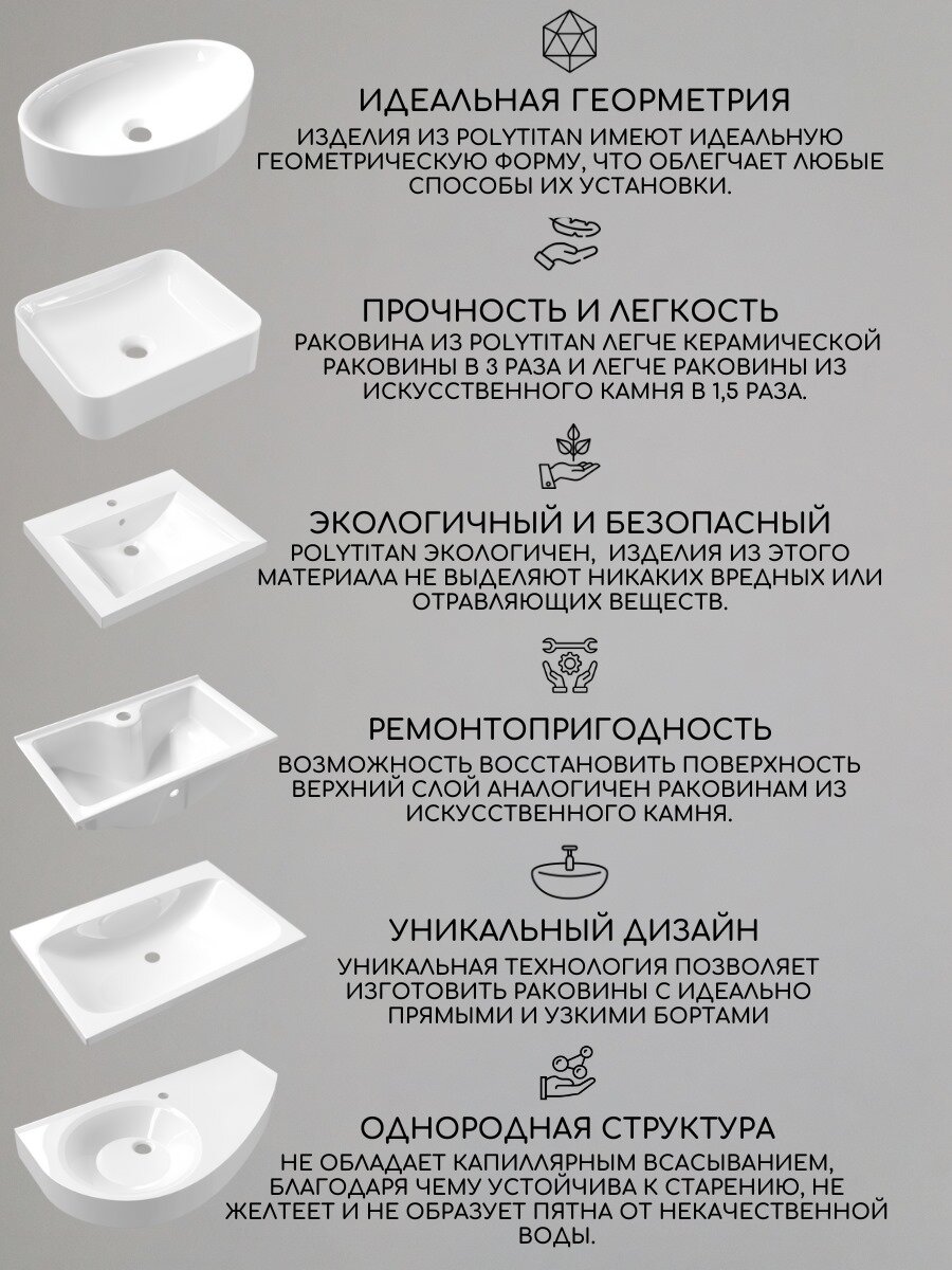 | ВКоробке | Раковина - 1 шт. Арматура для слива-перелива - 1 шт. Инструкция - 1 шт. |
