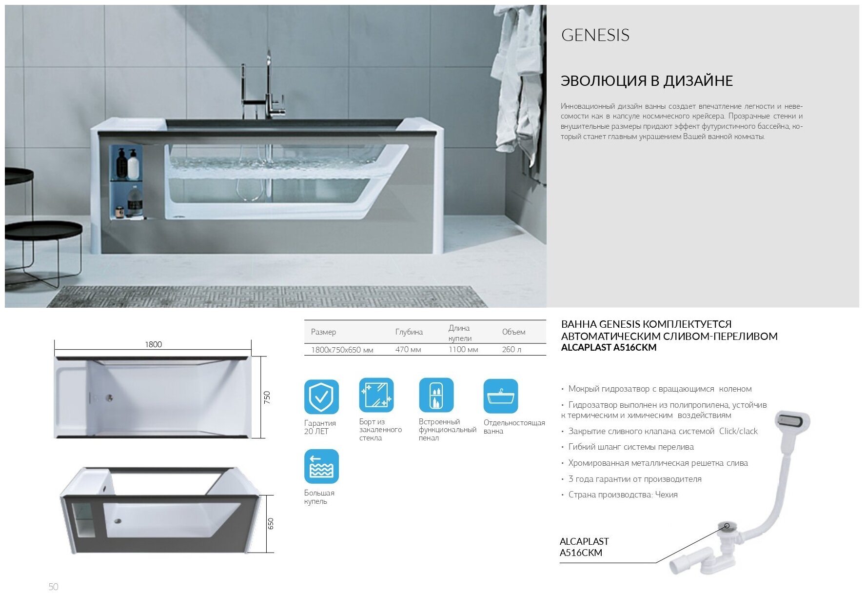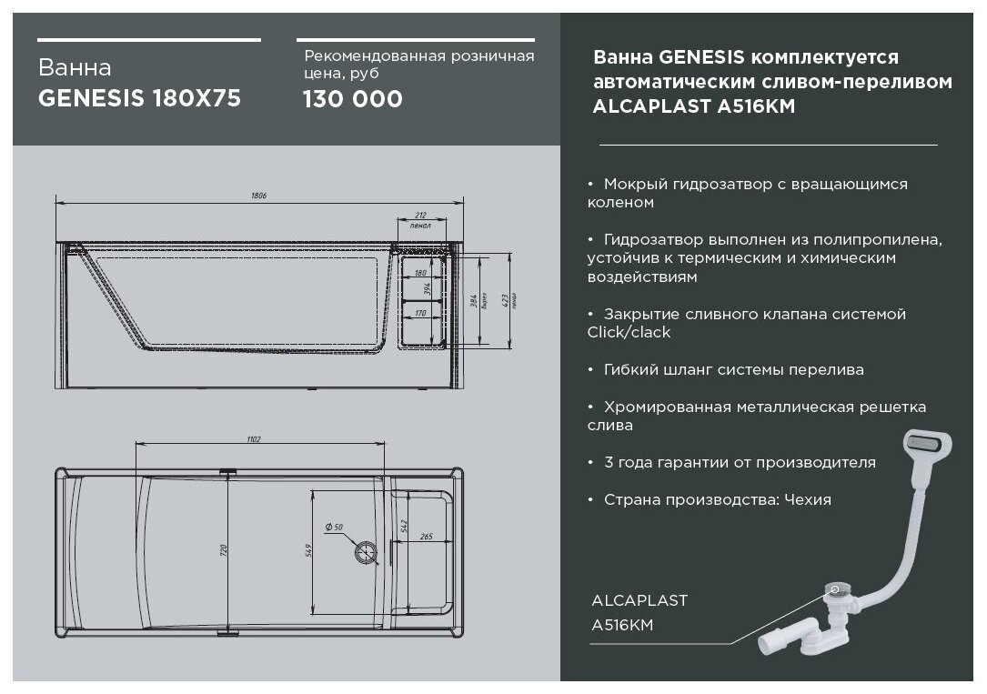 Модель: Genesis 180x75 01ген1875 без гидромассажа