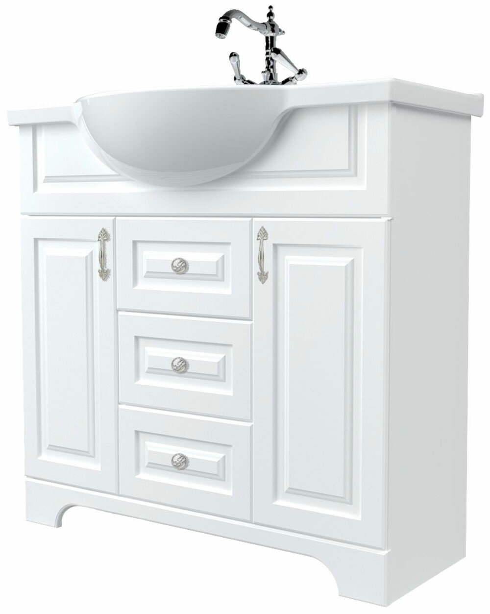 Тумба под раковину 1Marka Прованс 81 У94490 в классической благородной стилистике, которая разделена на несколько функциональных отсеков разного размера, благодаря чему превосходно подходит для хранения самых разнообразных предметов и личных вещей. Она станет прекрасным выбором для тех, кто ищет безупречное сочетание эстетики и функциональности в мебели для ванной комнаты. Изящная и элегантная, эта тумба отражает дух прованса и станет актуальным и уместным дополнением самых взыскательных традиционных интерьеров. Комфорт и удобство ее использования обеспечиваются качественной, проверенной временем немецкой фурнитурой Hettich.Отличительные характеристики: - облицованная пленкой ПВХ МДФ отличается влагостойкостью и надолго увеличит срок службы; - универсальный дизайн впишется в проект любой ванной комнаты; - надежная немецкая фурнитура: рассчитана на 30 000+ открытий; - вместительная система хранения: удобно хранить банные принадлежности, предметы личной гигиены; - дверный петли оснащены доводчиками, что обеспечивает мягкое закрывание дверей; - не нужно тратить время на сборку, изделие полностью готово к эксплуатации.