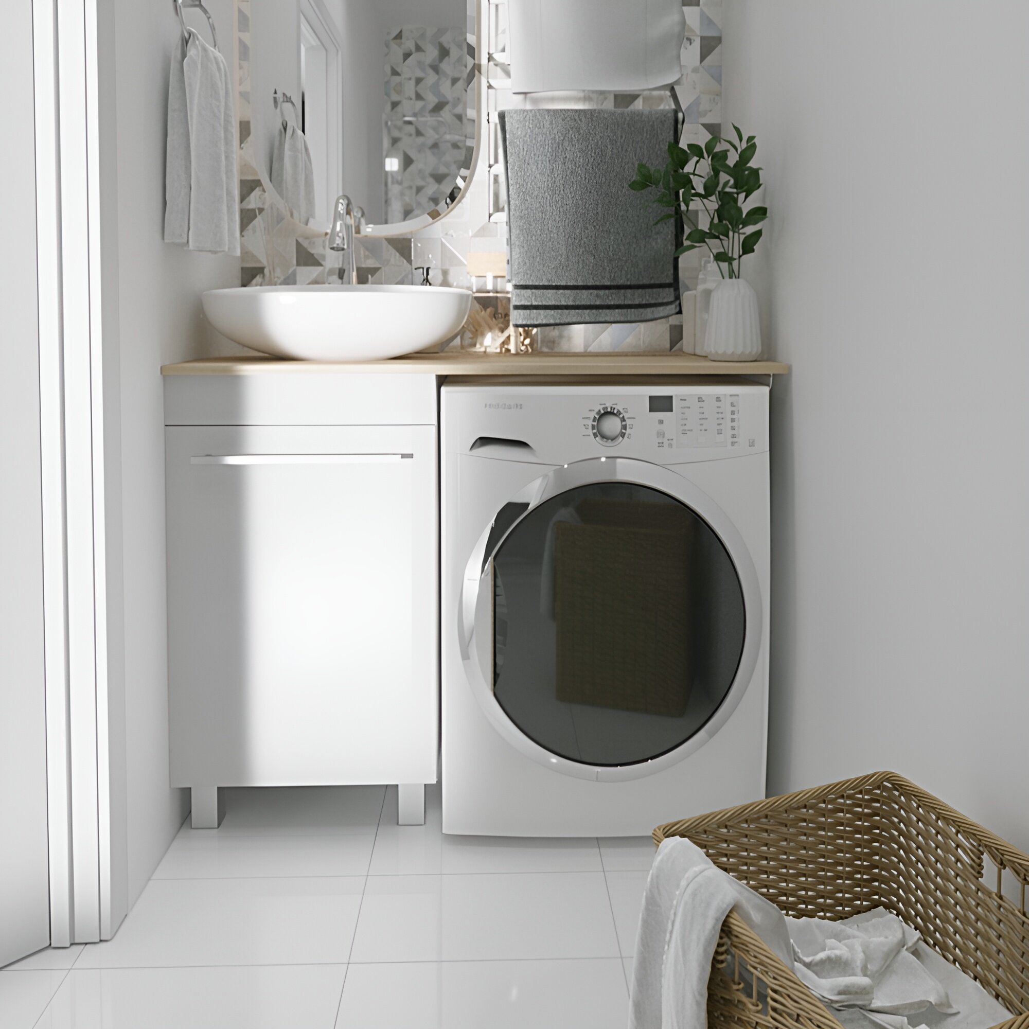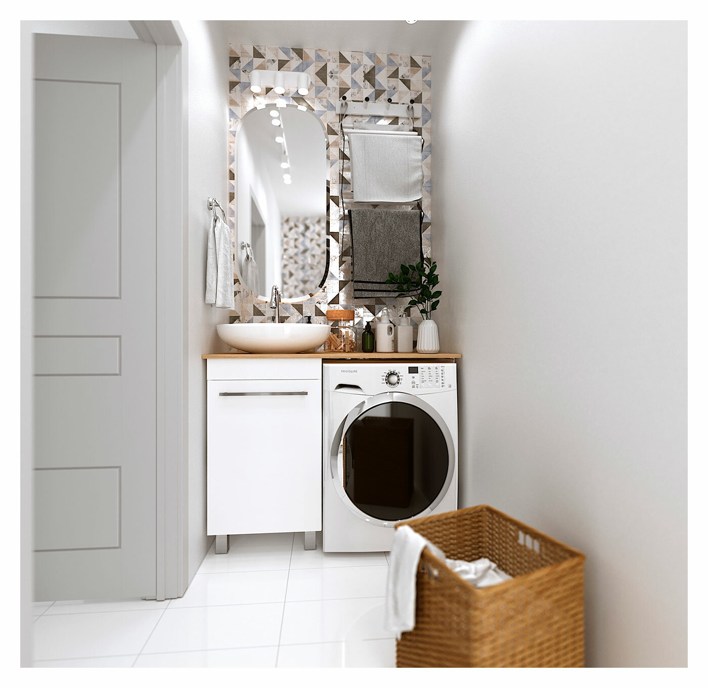 Решения для органичного встраивания в интерьер стиральной машины,большая столешница – дополнительная зона для хранения,высокая функциональность, позволяющая максимально разгрузить пространство.