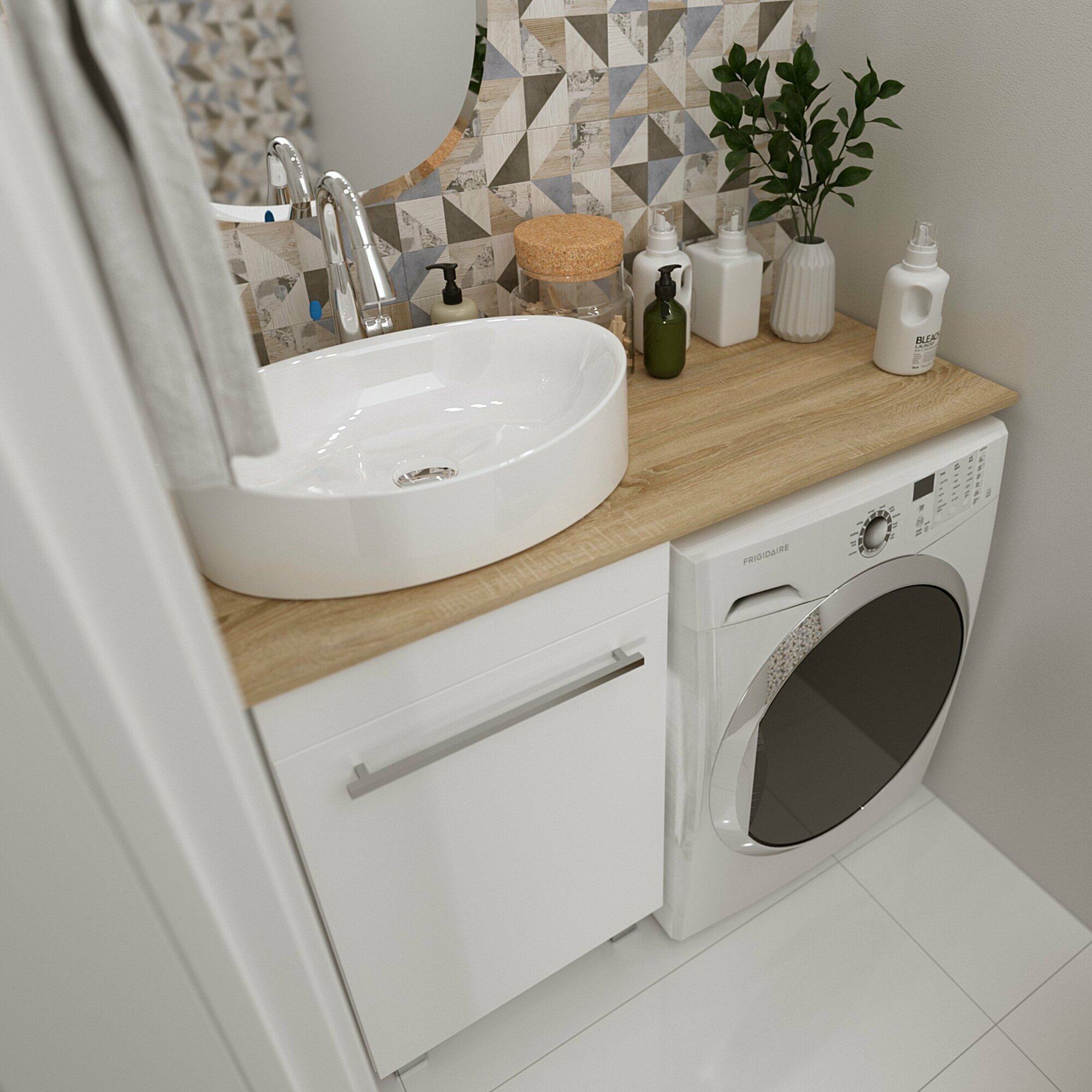 Столешница под раковину 1MarKa Wash 110 Ц0000004099 над стиральной машиной.