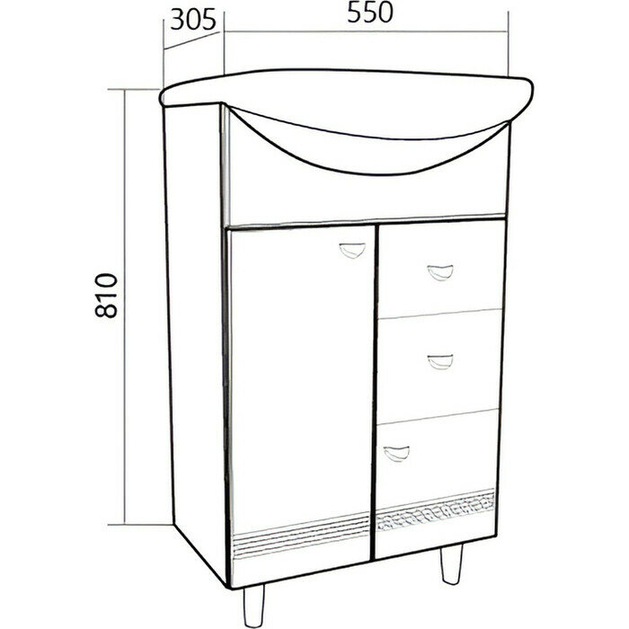 - Система хранения: 1 распашная дверца, 3 выдвижных ящика с правой стороны.