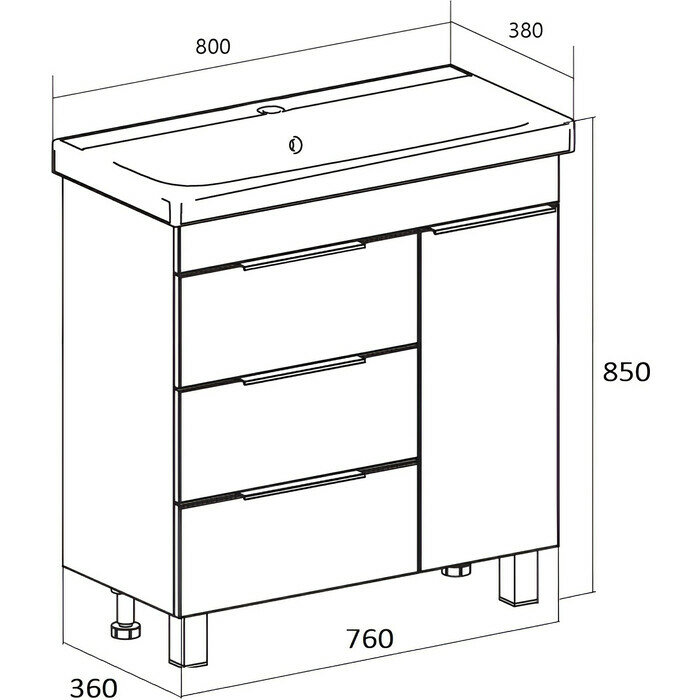 - Система хранения: 1 распашная дверца, 3 выдвижных ящика.