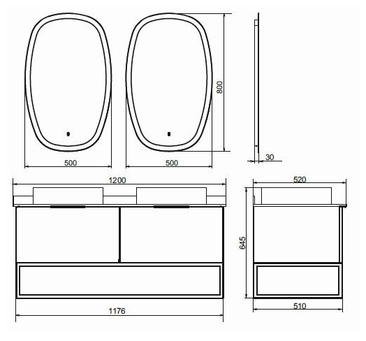 | Комплектация | раковина - 2 шт; тумба; фурнитура; столешница |
