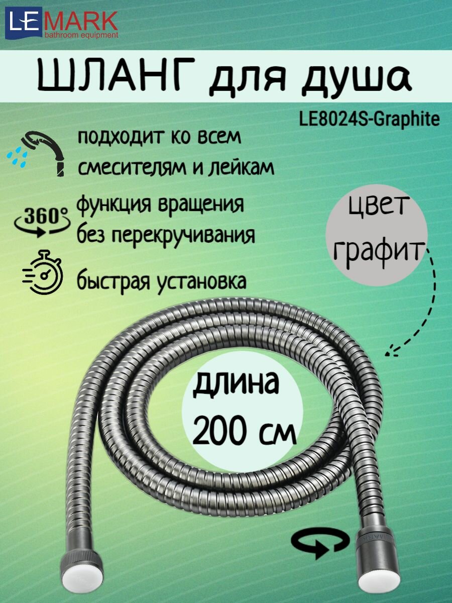 Душевой шланг Lemark LE8024S-Graphite Графит