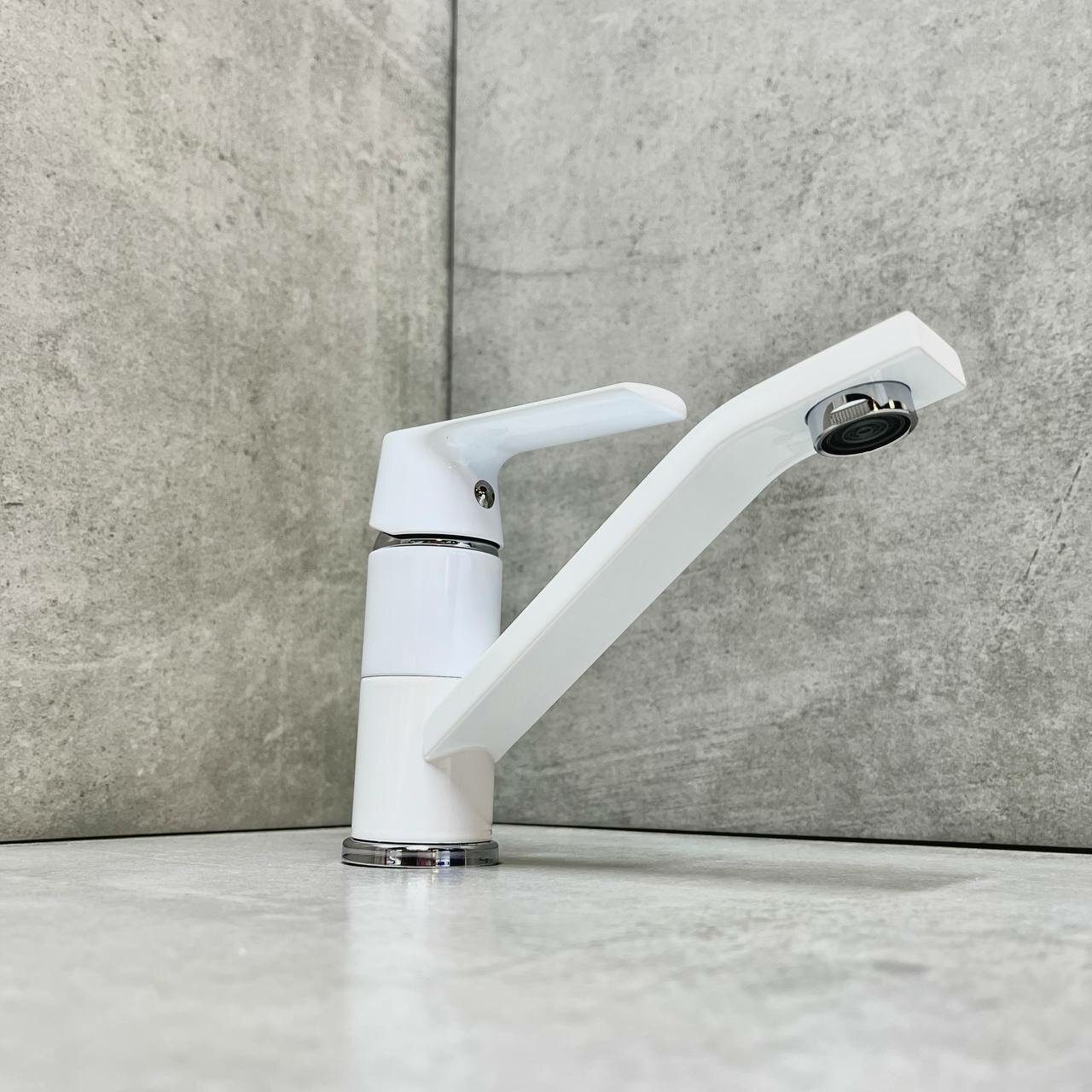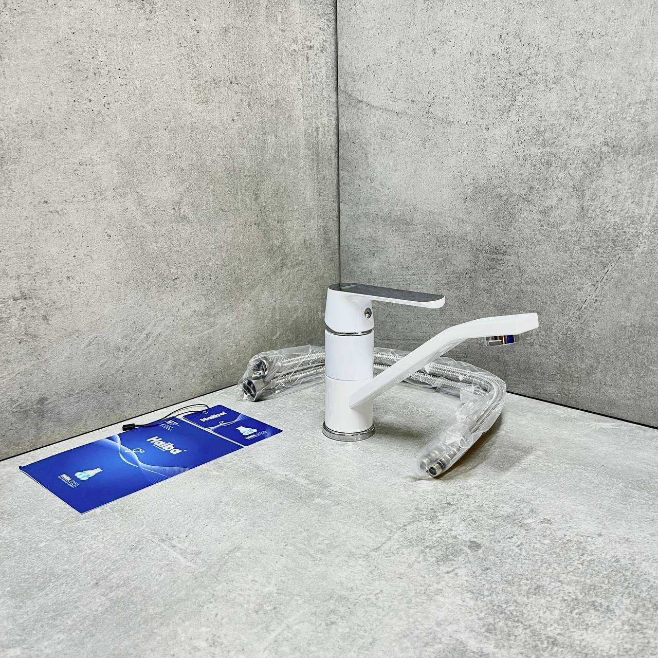 Смеситель Haiba HB45804-2 белый для кухни. Рычажный смеситель предназначен для горизонтального крепления. Это универсальная модель, в современном стиле. Рычажный смеситель для кухни с поворотным изливом изготовлен из латуни. Смеситель оборудован керамическим картриджем 35мм, который обеспечивает точную настройку напора воды. Стандарт подводки: 1/2. Тип подводки: гибкая. Комплектация: смеситель, инструкция. Высокоточные линии литья и обработки, а также использование современных материалов позволяют гарантировать высокий уровень качества продукции. Продукция отличается хорошим соотношением цены и качества