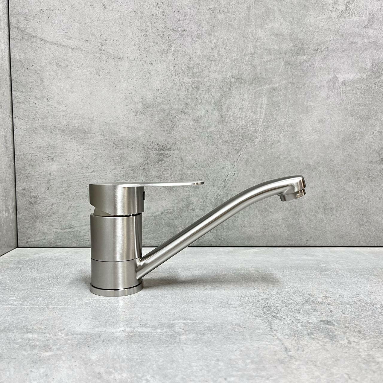 Смеситель Haiba для кухни. Рычажный смеситель предназначен для горизонтального крепления. Это универсальная модель, в современном стиле. Рычажный смеситель для кухни с поворотным изливом изготовлен из нержавеющей стали. Смеситель оборудован керамическим картриджем 35мм, который обеспечивает точную настройку напора воды. Стандарт подводки: 1/2. Тип подводки: гибкая. Крепление: гайка. Комплектация: смеситель, инструкция. Высокоточные линии литья и обработки, а также использование современных материалов позволяют гарантировать высокий уровень качества продукции. Продукция отличается хорошим соотношением цены и качества