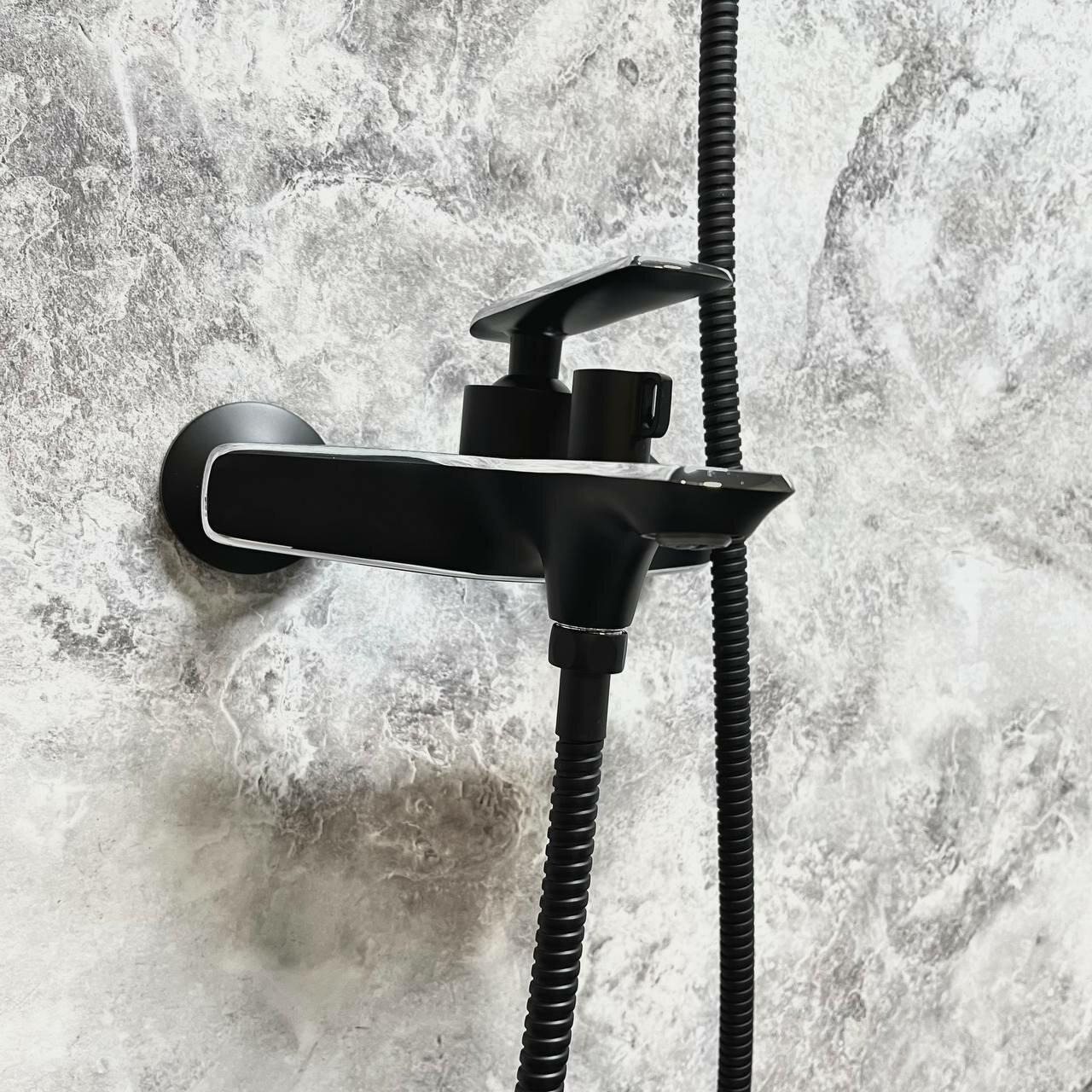 Смеситель Haiba HB60548-7 черный для ванны. Рычажный смеситель предназначен для вертикального крепления. Это универсальная модель, которая подходит для ванной комнаты. Смеситель для ванны и душа с монолитным изливом, длинным металлическим шлангом и лейкой изготовлен из латуни. Смеситель оборудован керамическим картриджем, который обеспечивает точную настройку напора воды. Душевой шланг длиной 150 см. Режимы ручного душа: 2. Монолитный излив оснащен аэратором. Аэратор существенно понижает уровень шума. Стандарт подводки: 1/2. Тип подводки: жесткая. Комплектация: смеситель, отражатели, шланг, лейка, держатель лейки, эксцентрики, инструкция. Высокоточные линии литья и обработки, а также использование современных материалов позволяют гарантировать высокий уровень качества продукции. Продукция отличается хорошим соотношением цены и качества.