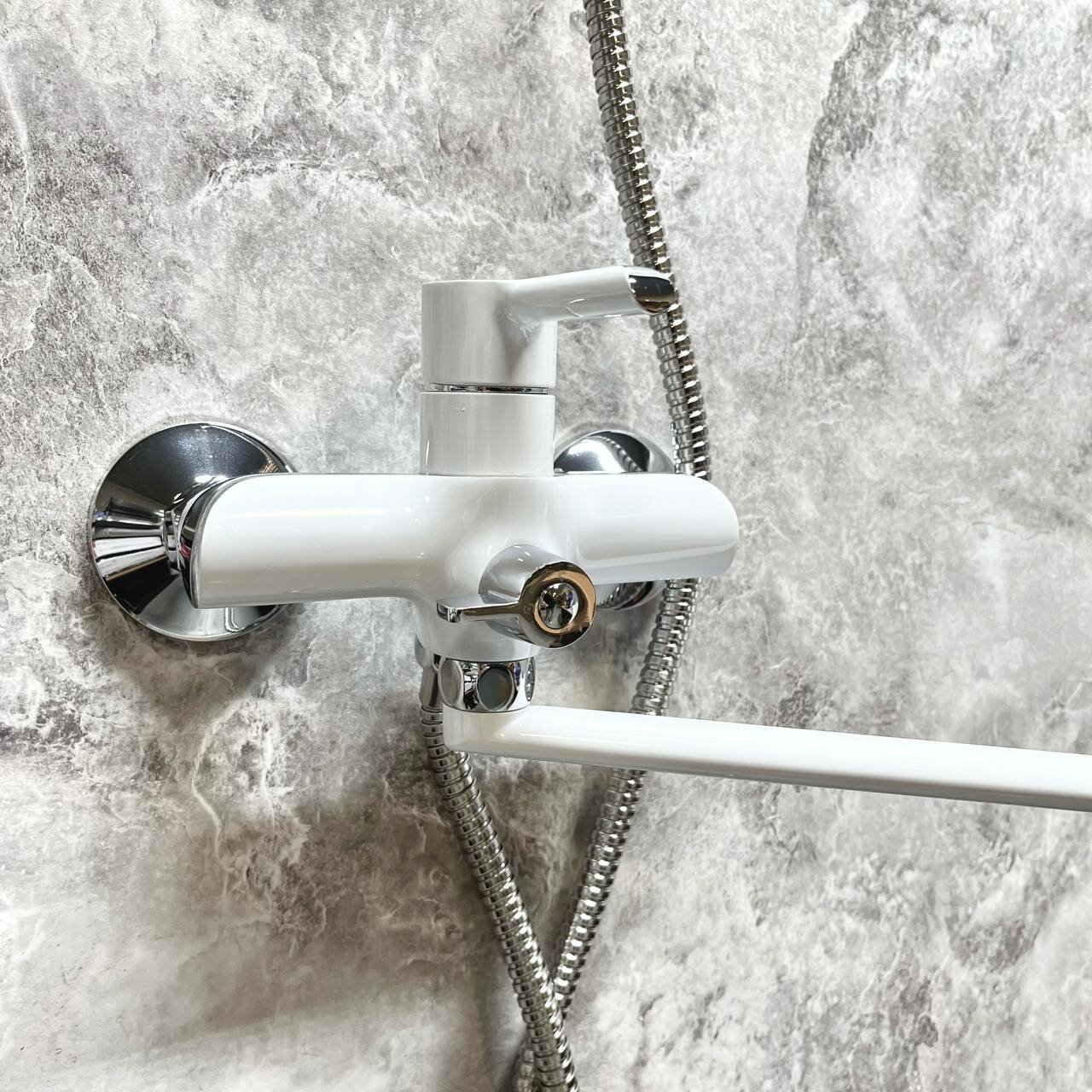Смеситель Haiba HB22805-8 белый для ванны. Рычажный смеситель предназначен для вертикального крепления. Это универсальная модель, которая подходит для ванной комнаты. Смеситель для ванны и душа с прямым поворотным изливом, длинным металлическим шлангом и лейкой изготовлен из латуни. Смеситель оборудован керамическим картриджем, который обеспечивает точную настройку напора воды. Душевой шланг длиной 150 см. Переключатель душ/излив, имеет поворотный механизм с фиксацией, что позволяет успешно использовать данную модель в квартирах и домах с пониженным давлением в системе водопровода. Поворотный излив оснащен аэратором. Аэратор существенно понижает уровень шума. Количество режимов ручного душа: 2. Стандарт подводки: 1/2. Тип подводки: жесткая. Комплектация: смеситель, отражатели, шланг, лейка, держатель лейки, эксцентрики, инструкция. Высокоточные линии литья и обработки, а также использование современных материалов позволяют гарантировать высокий уровень качества продукции. Продукция отличается хорошим соотношением цены и качества