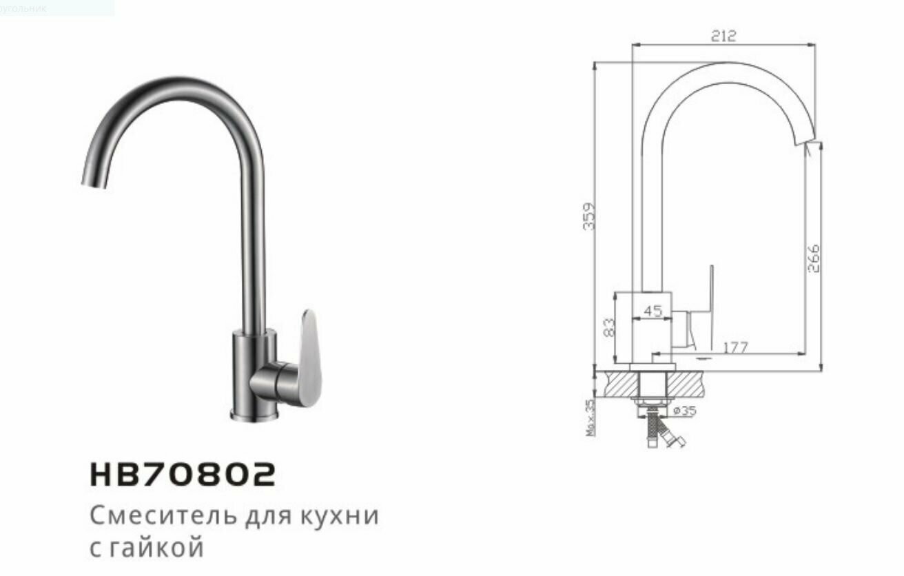Смеситель для кухни Haiba HB70802 Сталь