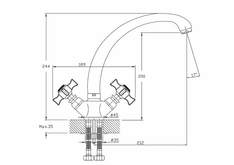 Смеситель для кухни Haiba HB4724, имеется два рычага для того, чтобы регулировать напор воды. Наличие аэратора в смесителях помогает обеспечить равномерную подачу воды , а также ее смягчение. Сетка в устройстве отфильтровывает нежелательные примеси. устанавливается на шпильке. Внизу смесителя ставится резинкадля того, чтобы смеситель не царапал и не ездил по столешнице, затем вкручиваются шпильки. Получившуюся конструкцию ставим в отверстие, насаживаем на крепление и фиксируем гайками. представленная модель выполняется в классическом стиле. Материал данного прибора - латунь, проверенный красивый материал, который обеспечивает идеальное напыление хромированного покрытия. Прибор традиционной округлой формы. Модель, которая имеет поворотный излив. Его можно вращать, что существенно повышает производительность применения данного прибора. Такой тип смесителей оснащается керамической кран-буксой. Укомплектован аэратором. Гибкая подводка 40 см. С поворотным изливом.