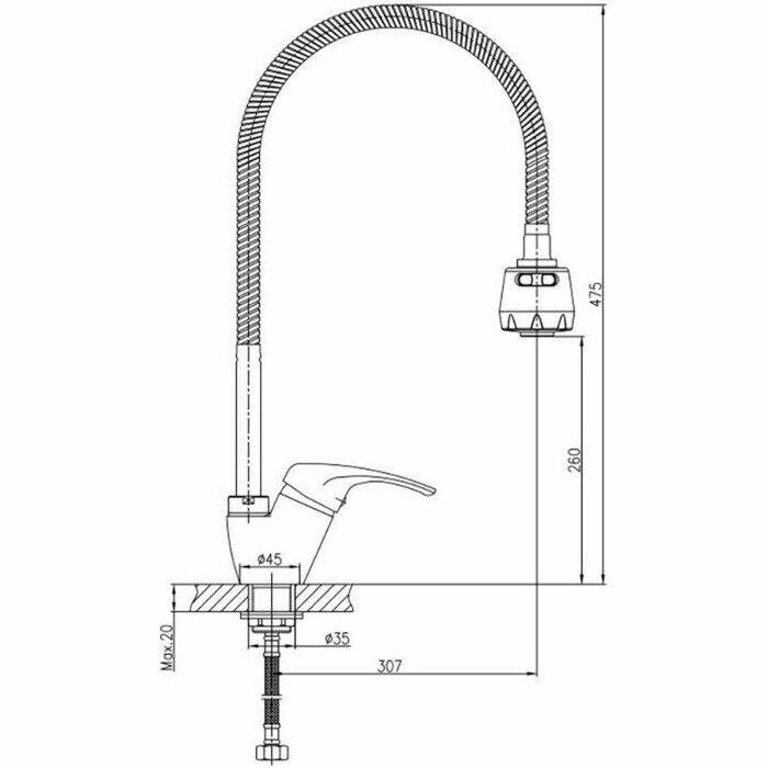 | Тип излива | гибкий, поворотный |