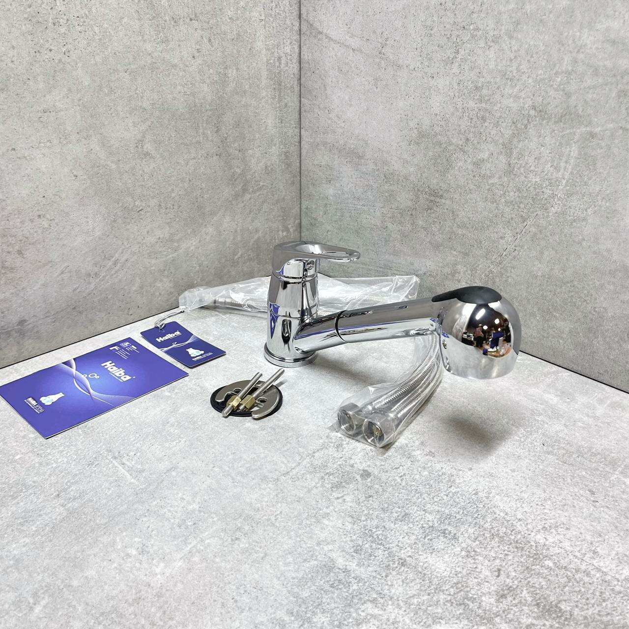 Смеситель для кухни с выдвижной лейкой Haiba HB6013, представленная модель позволяет быстро контролировать температуру и напор воды, с помощью однорычажного управления. Аэратор в данном приборе поможет обеспечить равномерный поток воды , а также ее смягчение. Сетка в устройстве отфильтровывает разные примеси. Конструкция смесителей на шпильке подразумевает их монтаж в специальное отверстие с помощью креплений. Обычно используются две шпильки, которые зажимаются винтами с обратной стороны раковины или умывальника. Выполнен в новом современном стиле, необычная модель в дизайнерском исполнении. Материал корпуса - латунь, надежный материалвысочайшего качества, который обеспечивает идеальное нанесение хромированного покрытия. Модель обычной округлой формы. Смеситель оснащен выдвижным изливом. С помощью выдвижного гибкого шланга, излив смесителя можно вытянуть из держателя. Прибор имеет 2 режима функционирования, аэрированная струя и душ. Чтобы переключать режимы в сопле распылителя есть силиконовая вставка. Излив имеет возможность вращения, что напрямую положительно влияет на функциональность. Имеет керамический картридж, который смешивает горячую и холодную воду. Помимо этого понижается шум подачи воды. Картридж 35 мм. Укомплектован аэратором. Гибкая подводка 40 см. С поворотным изливом