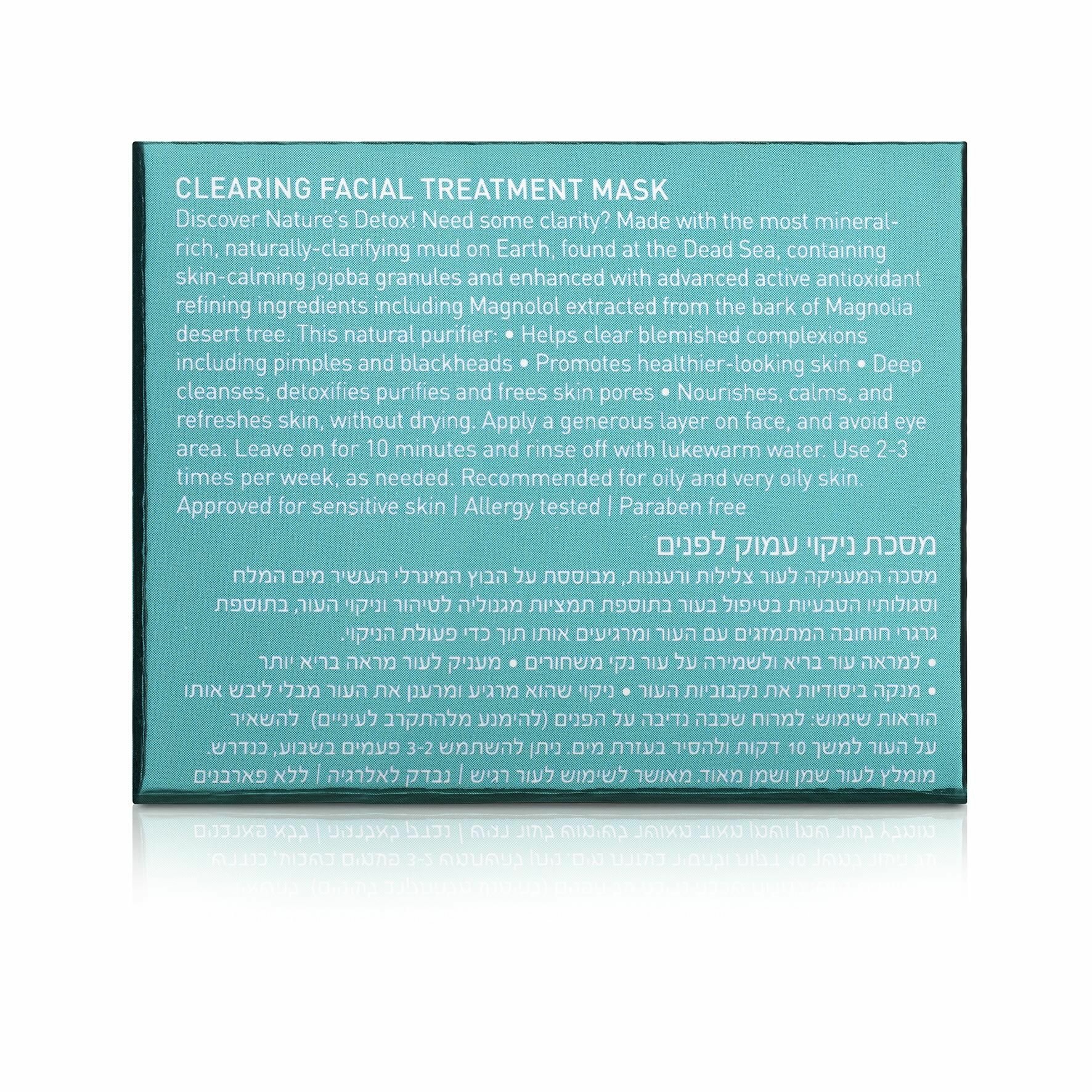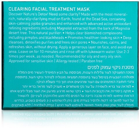 Очищающая детокс-маска для лица содержит грязь Мертвого моря. Эта единственная в своем роде черная грязь является самым богатым источником минералов для кожи с научно доказанным натуральным терапевтическим эффектом. В основном представляет собой антимикробное воздействие, которое помогает коже поддерживать баланс: