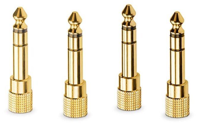 Комплект фирменных адаптеров джек 3,5 мм – 6,3 мм из 4 штук. Специально создан для консоли Rode RODECaster Pro и аудиоинтерфейса Rode AI-1. позволяет подключить к консоли любые наушники с коннектором джек 3,5 мм.